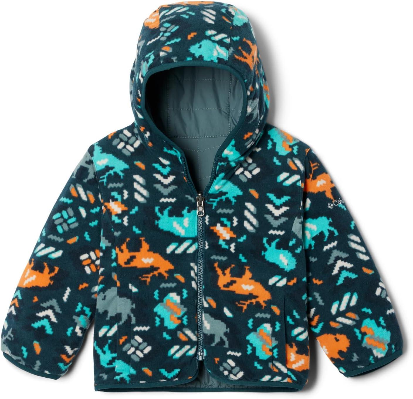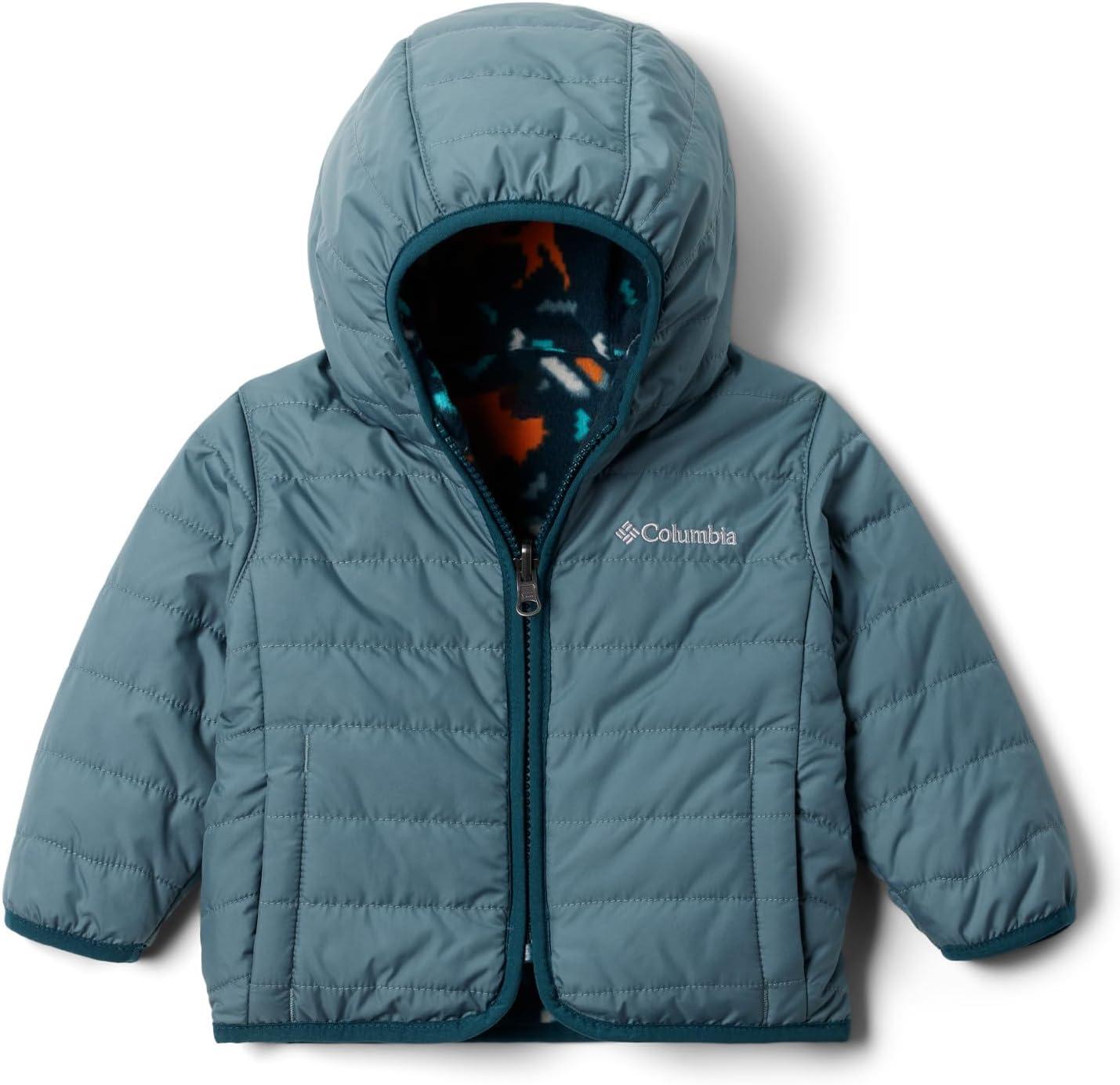The Columbia Youth Double Trouble™ Reversible Winter Jacket is made from a water repellent 100% polyester shell for infants and toddlers, the perfect outer layer for cold fall and winter days. Designed with comfortable snug binding at the hood and cuffs, the jacket will keep the cold out, and their little body heat in. Reversible design provides a different color and pattern from one side to the other. One side soft fleece, the other water repellent polyester. With lightweight materials and simple design mean it’s ready for some serious playtime, your go-to staple for their everyday outdoor use. Columbia offers this youth jacket in a wide range colors, pattens, and sizes from newborn to toddler age. To ensure you get the right size, please refer to our sizing chart for your child’s size and weight range. Imported. Made from 100% polyester. Zippered closure. Machine Wash.