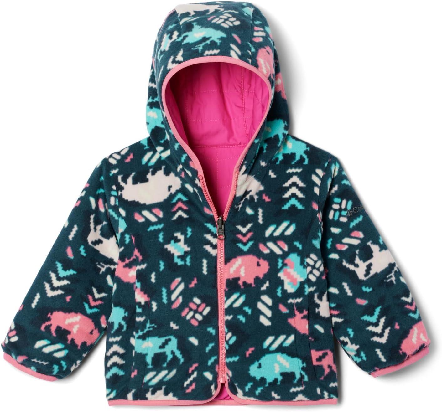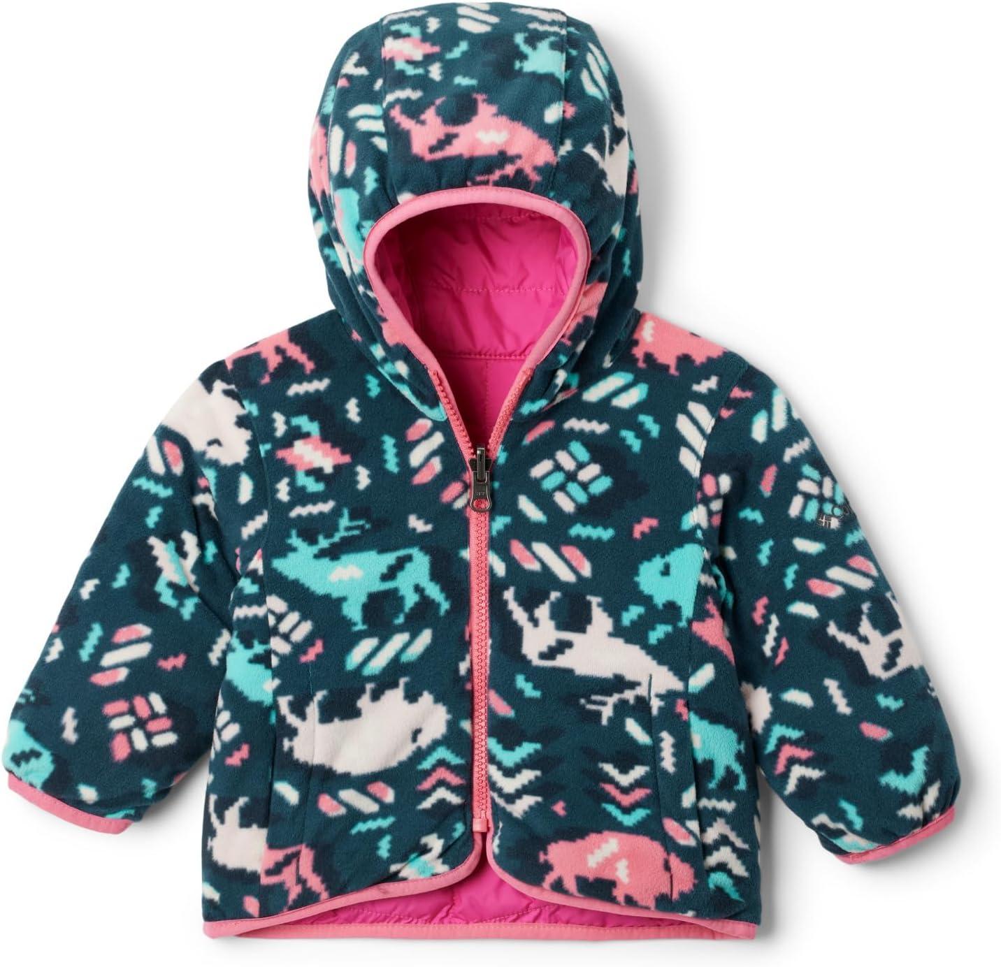 The Columbia Youth Double Trouble™ Reversible Winter Jacket is made from a water repellent 100% polyester shell for infants and toddlers, the perfect outer layer for cold fall and winter days. Designed with comfortable snug binding at the hood and cuffs, the jacket will keep the cold out, and their little body heat in. Reversible design provides a different color and pattern from one side to the other. One side soft fleece, the other water repellent polyester. With lightweight materials and simple design mean it’s ready for some serious playtime, your go-to staple for their everyday outdoor use. Columbia offers this youth jacket in a wide range colors, pattens, and sizes from newborn to toddler age. To ensure you get the right size, please refer to our sizing chart for your child’s size and weight range. Imported. Made from 100% polyester. Zippered closure. Machine Wash.