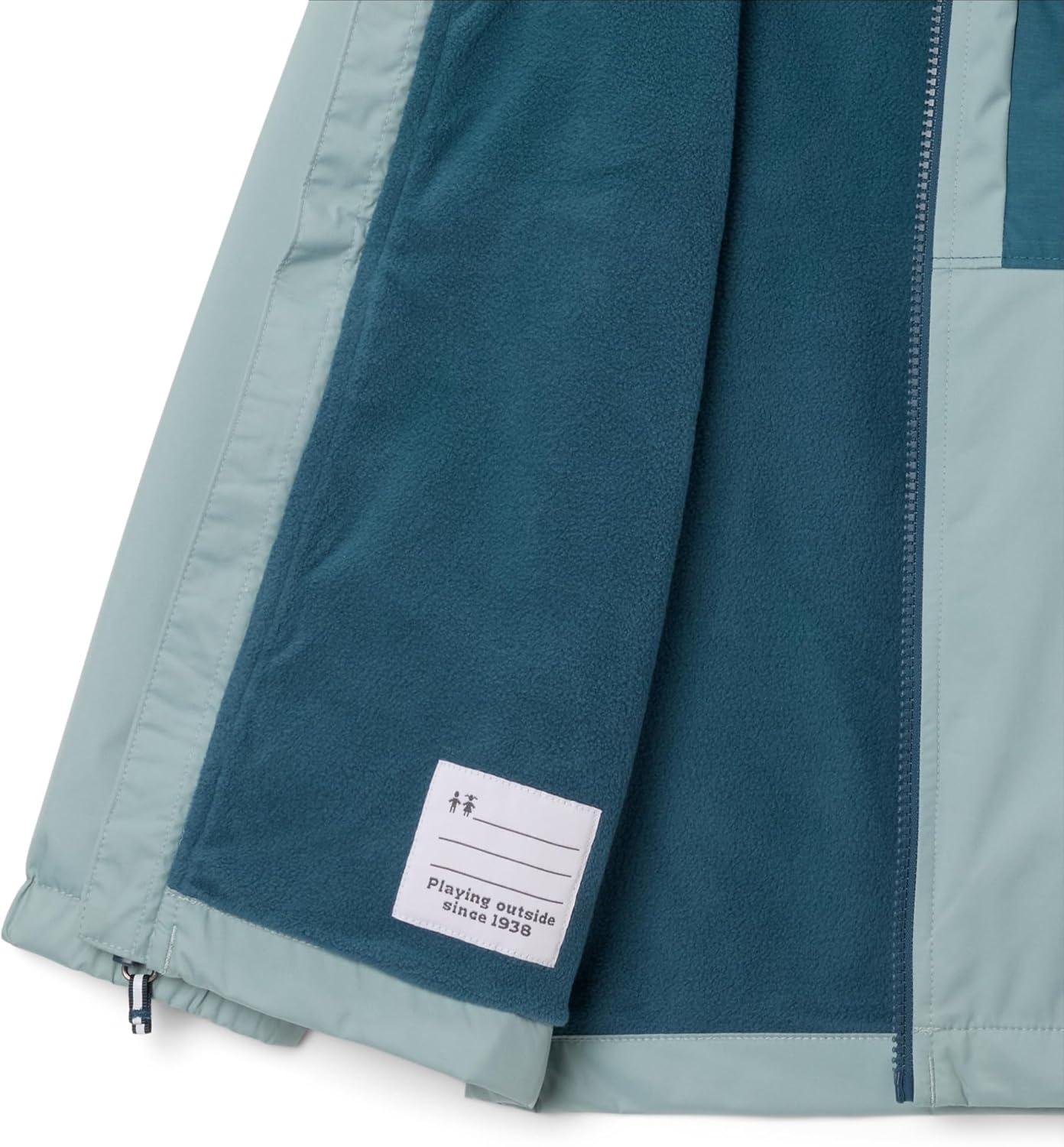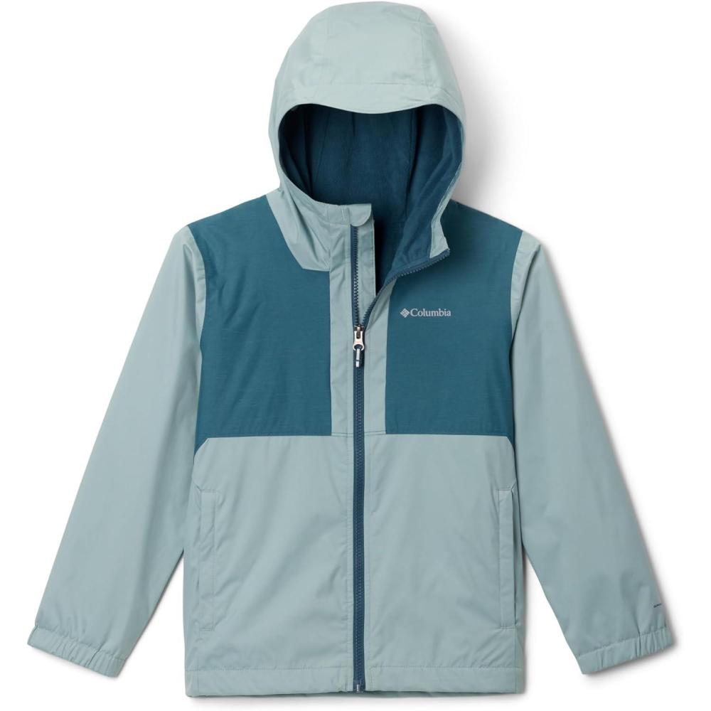 Keep them warm in the storm with this Columbia boys’ rain jacket, featuring a durable waterproof-breathable shell with a soft fleece lining. Columbia offers this jacket in multiple colors and sizes. Regular fit.
