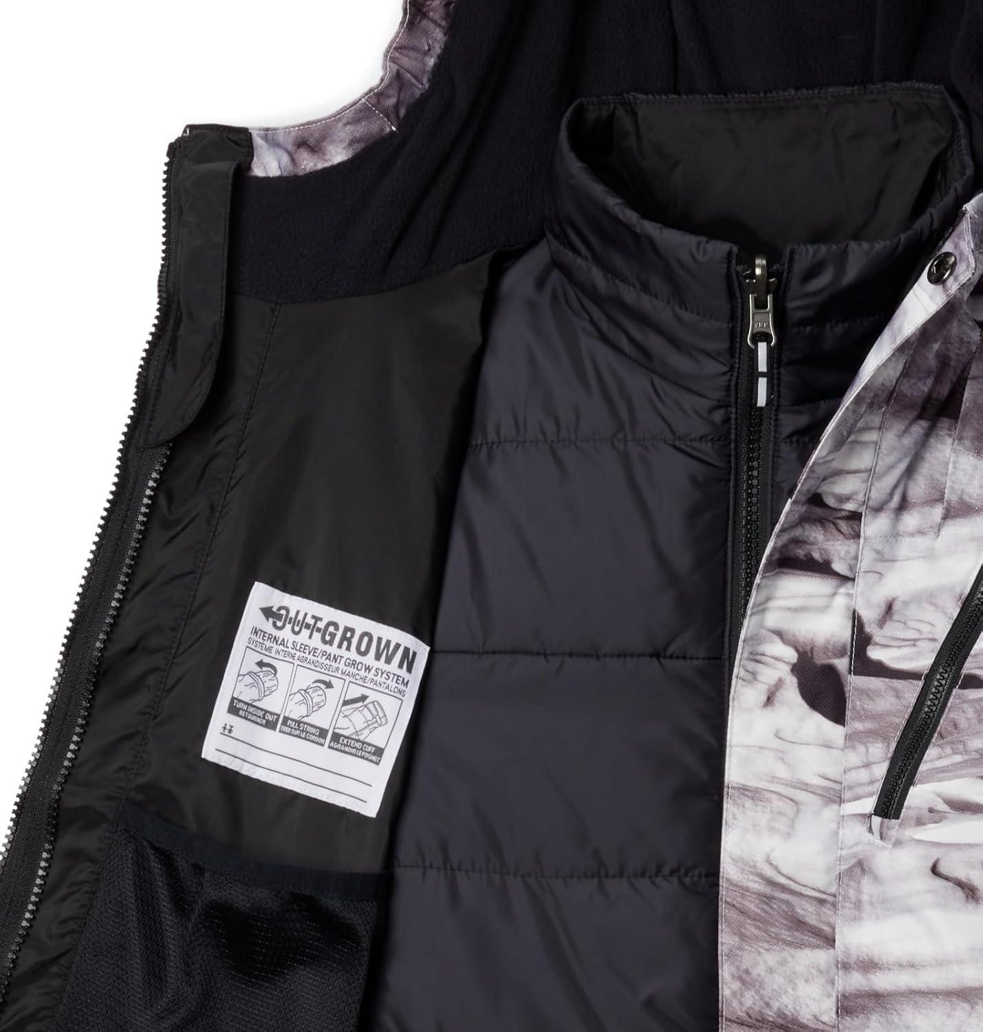 Waterproof on the outside and warm on the inside, this Columbia boys’ 3-in-1 jacket system equips them for all conditions. It has a zip-in, insulated jacket that can be worn alone or with the shell, a suite of mountain-ready features, and extendable cuffs for years of use. Columbia offers this jacket in multiple colors and sizes. Regular fit.