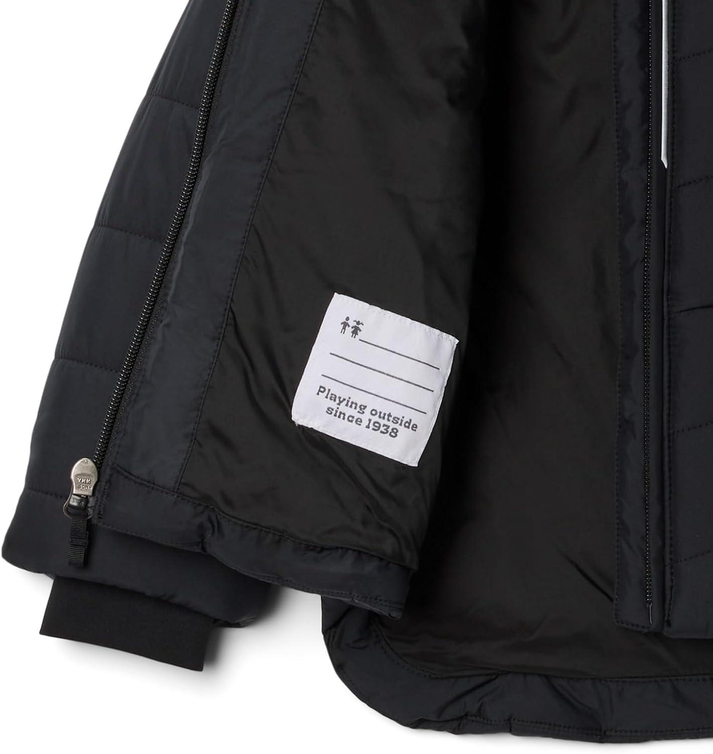 Puffy meets pretty in this insulated Columbia girls’ jacket, complete with toasty insulation and removable faux fur trim to keep them warm. It’s a stylish choice for chilly days and has cuffs that extend as your kid grows. Columbia offers this jacket in multiple colors and sizes. Regular fit.