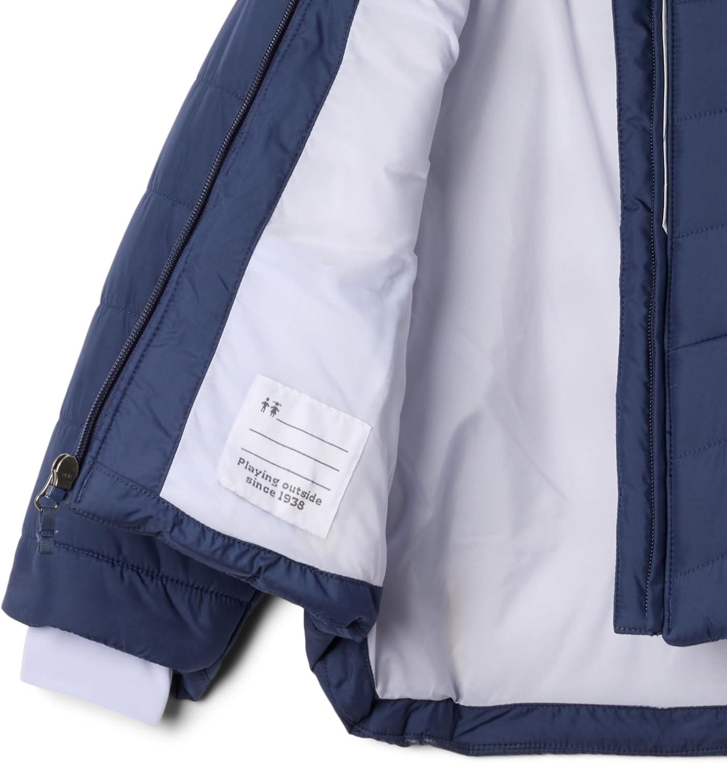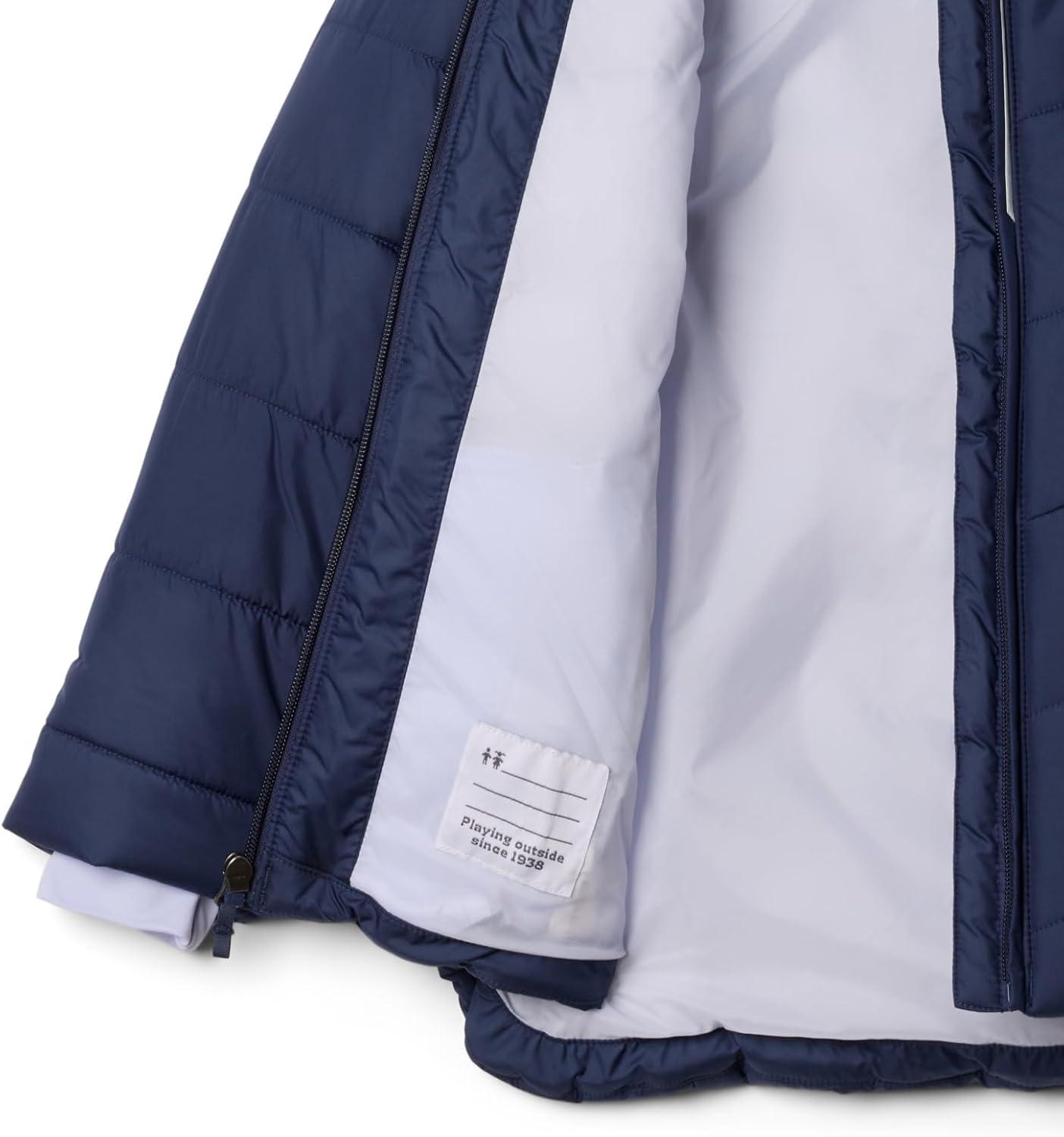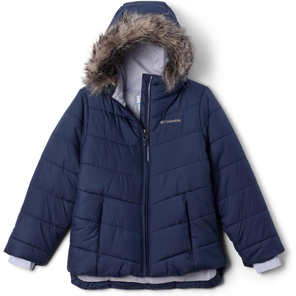 Puffy meets pretty in this insulated Columbia girls’ jacket, complete with toasty insulation and removable faux fur trim to keep them warm. It’s a stylish choice for chilly days and has cuffs that extend as your kid grows. Columbia offers this jacket in multiple colors and sizes. Regular fit.