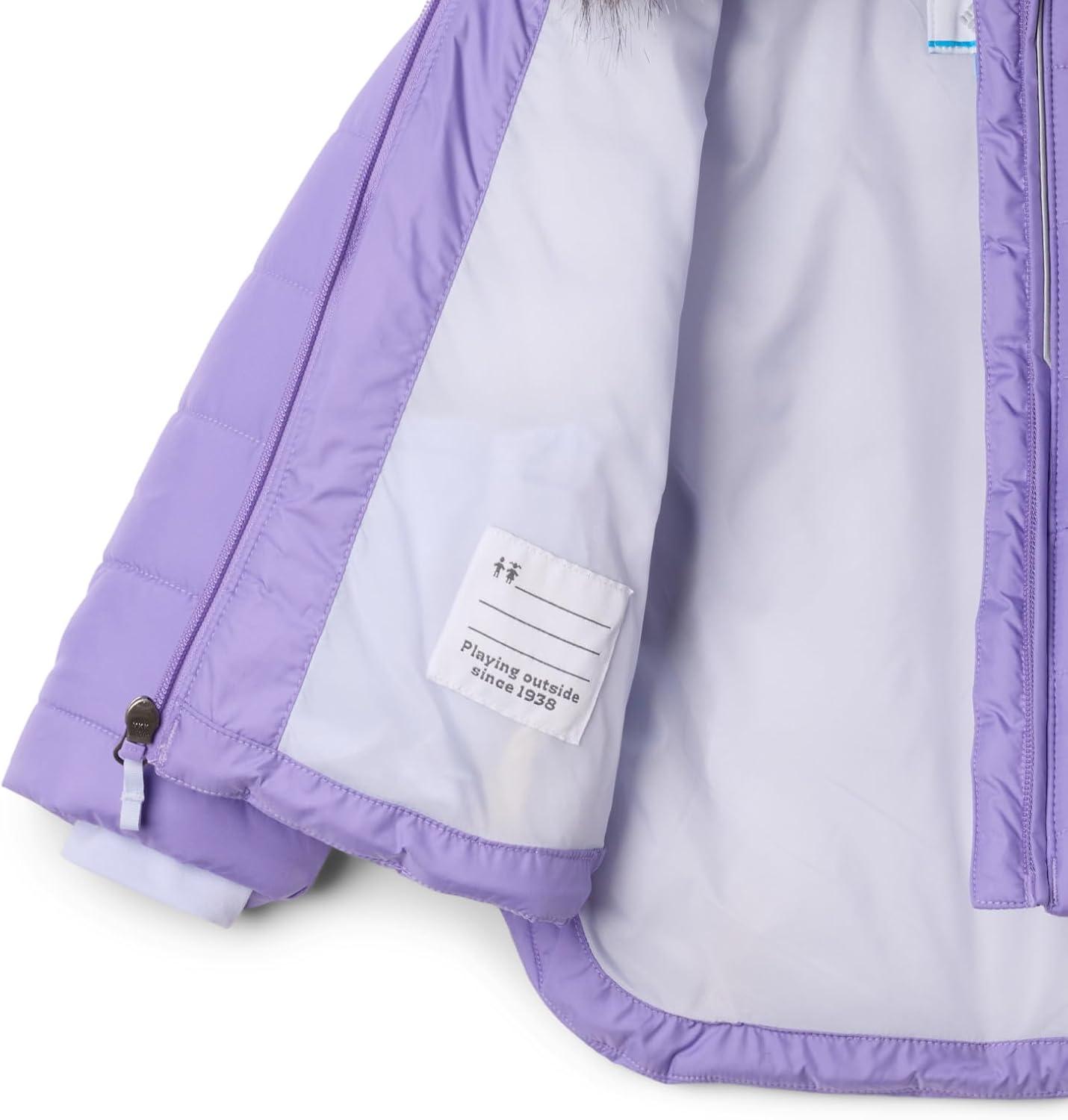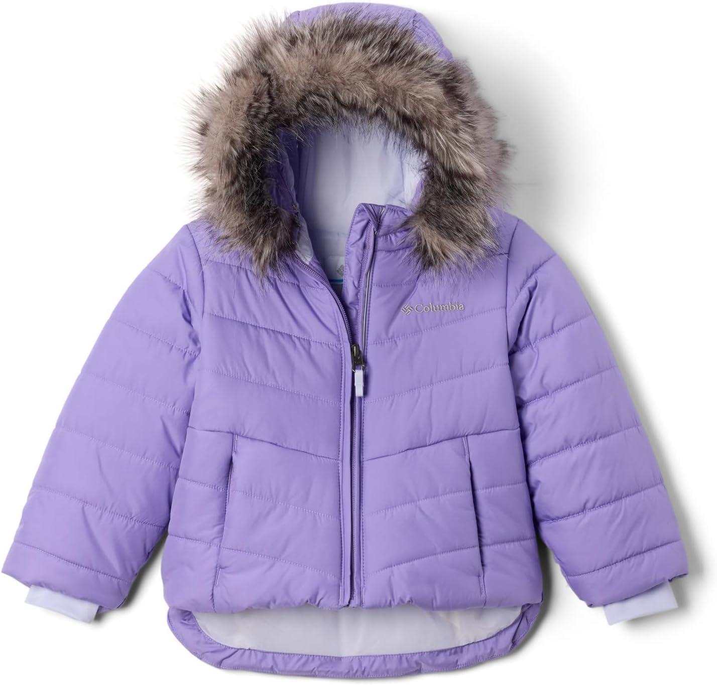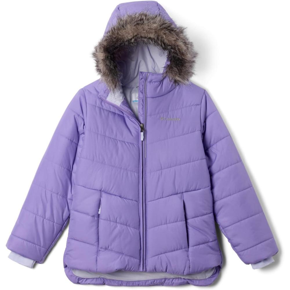 Puffy meets pretty in this insulated Columbia girls’ jacket, complete with toasty insulation and removable faux fur trim to keep them warm. It’s a stylish choice for chilly days and has cuffs that extend as your kid grows. Columbia offers this jacket in multiple colors and sizes. Regular fit.