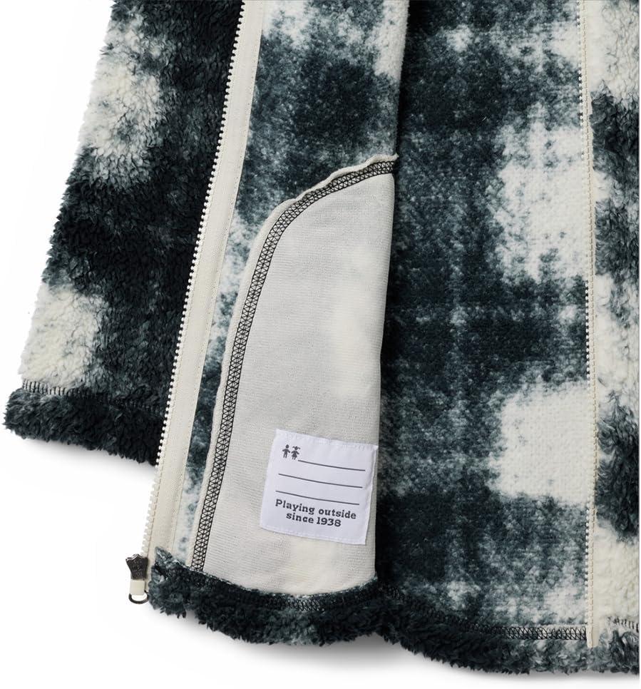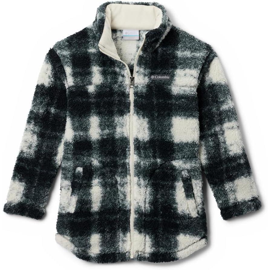 This plush Columbia girls’ Sherpa fleece jacket keeps them warm from trail to playground with a comfortable fit and multiple prints. Columbia offers this jacket in multiple colors and sizes. Regular fit.