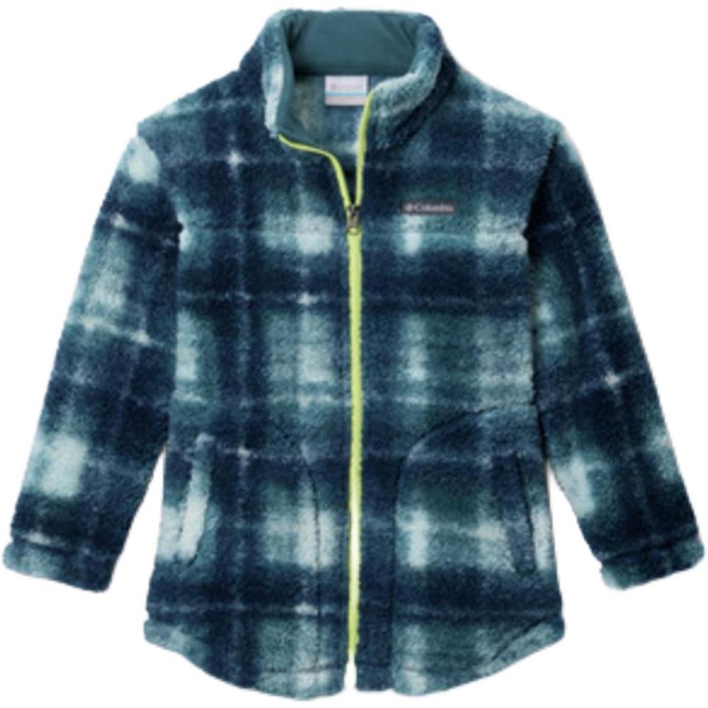 This plush Columbia girls’ Sherpa fleece jacket keeps them warm from trail to playground with a comfortable fit and multiple prints. Columbia offers this jacket in multiple colors and sizes. Regular fit.
