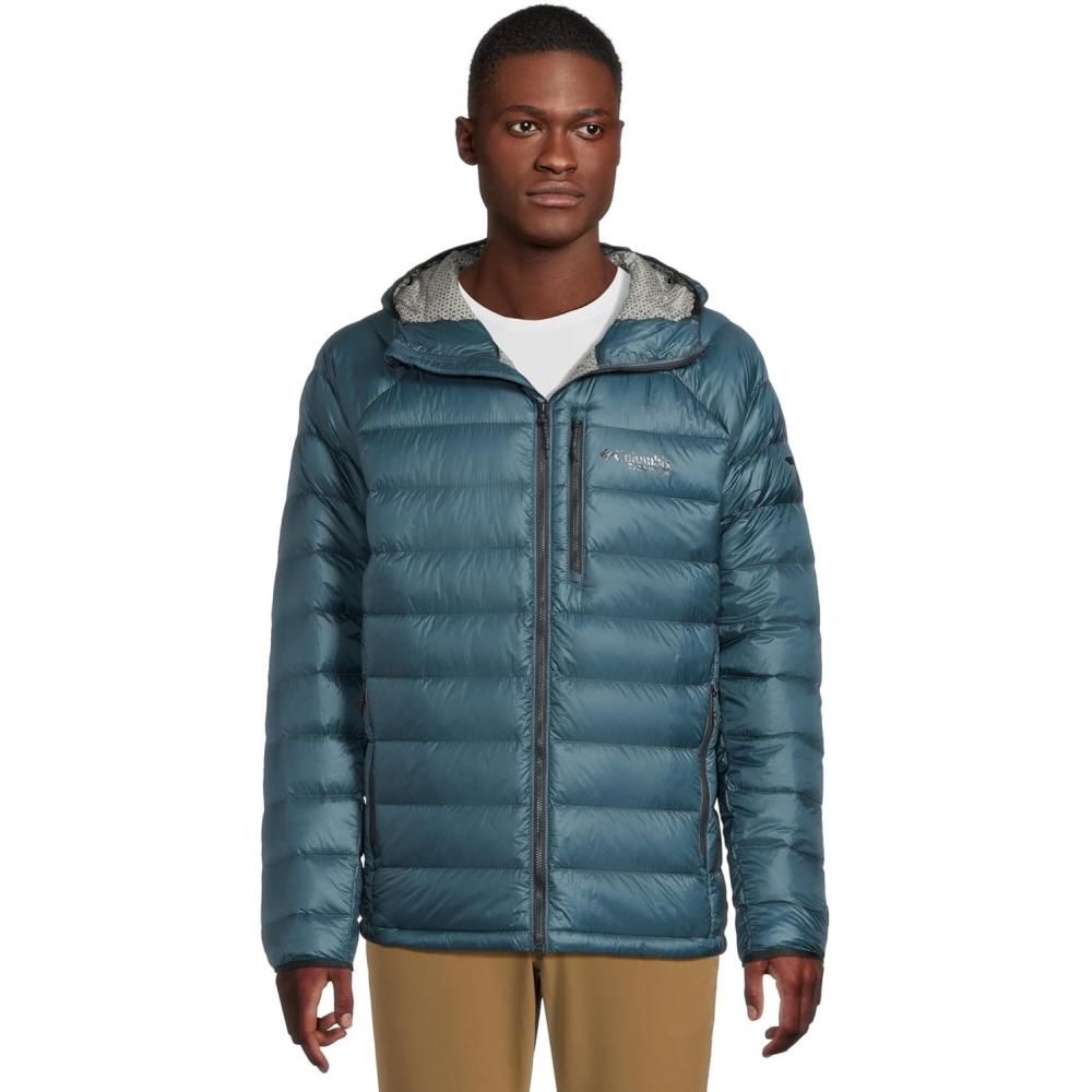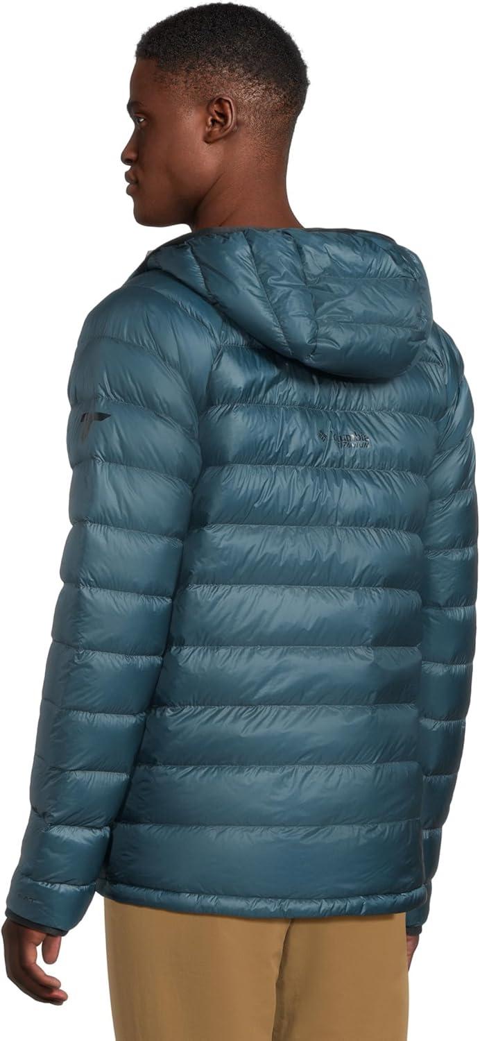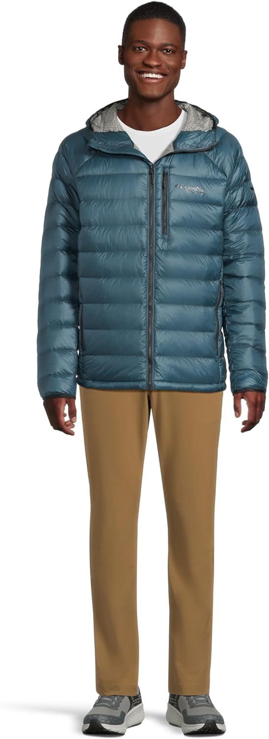 Supremely warm, water-resistant, and packable, this Columbia Titanium men’s hooded jacket uses 700-fill responsibly sourced down and an innovative solar-capture insulation system. It delivers lightweight, high-efficiency warmth and stuffs down small so you can easily toss it in your pack. Columbia offers this jacket in multiple colors and sizes. Active fit.