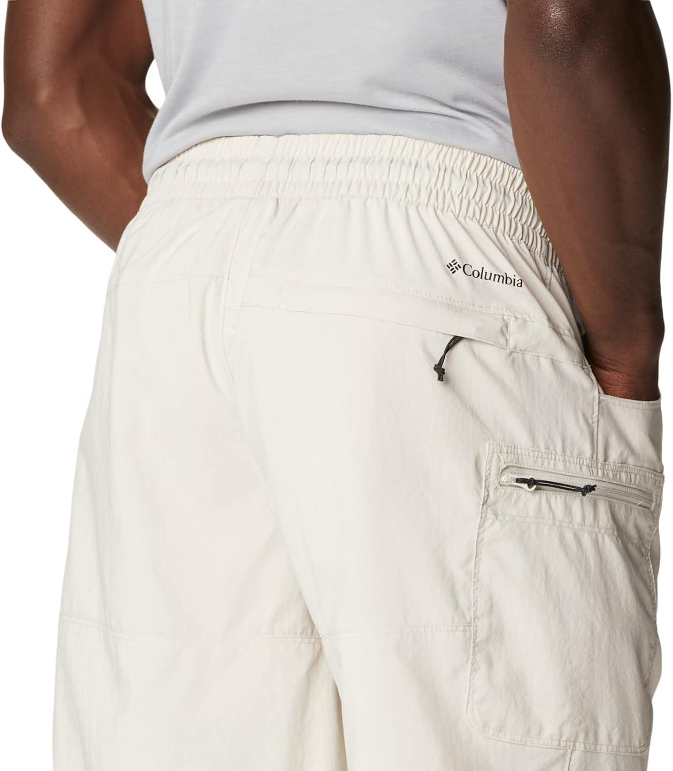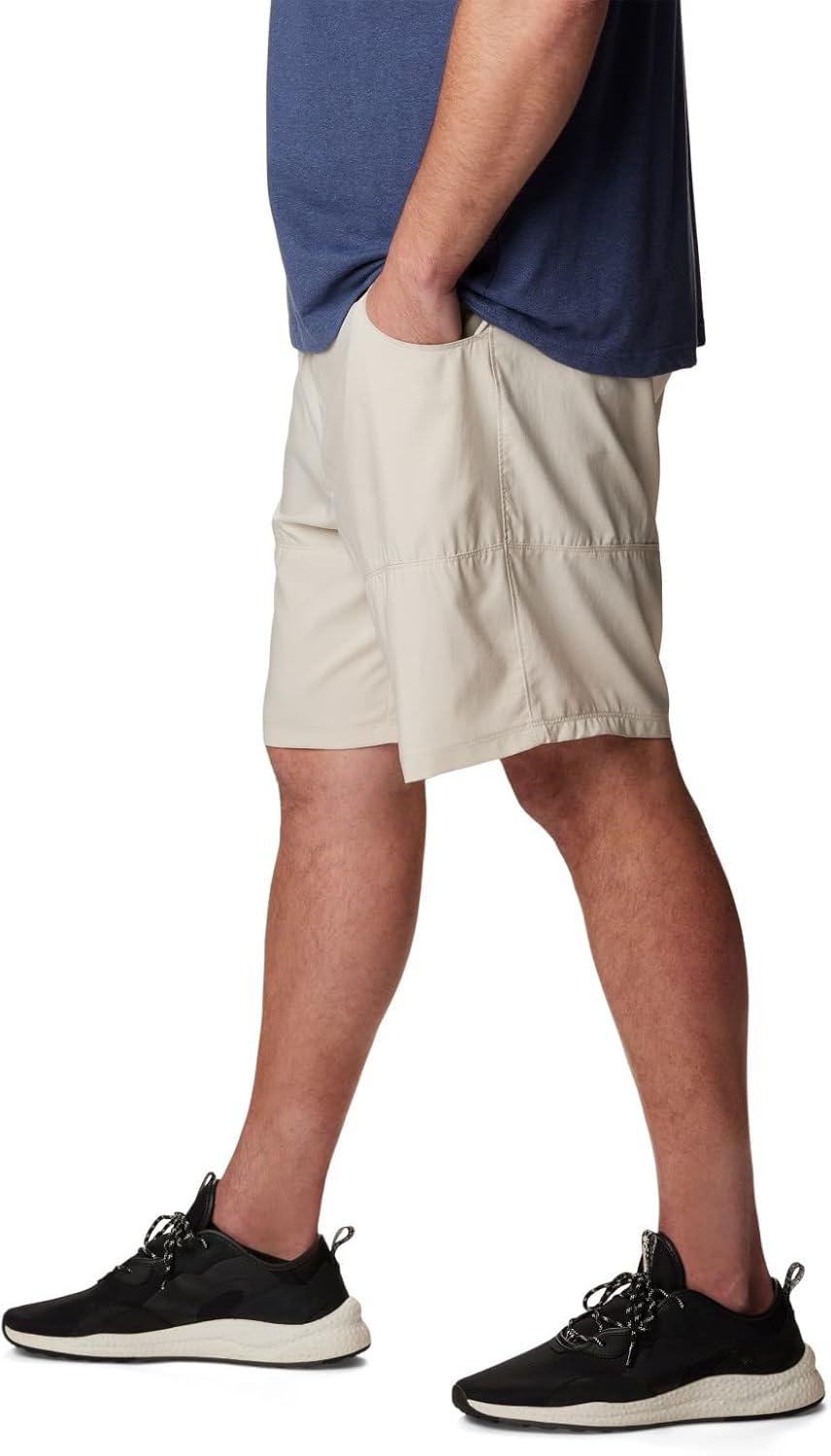 An eco-friendly short that's ready for anything. Whether you're hiking, biking, or hanging out, this sun-shielding, sweat-wicking pair will perform. It combines our signature technologies: Omni-Shade protection from UV rays and Omni-Wick wicking power. And bonus, it's made using 100% recycled Bluesign-approved fabric. Features you’ll love include stretchy elastic and a drawcord at the waist, two hand pockets, and two zip security pockets — one cargo and one at the back. Columbia offers these pull-on shorts in multiple colors and sizes. Extended sizing available. Regular Fit.