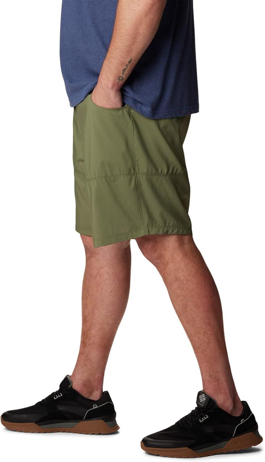 An eco-friendly short that's ready for anything. Whether you're hiking, biking, or hanging out, this sun-shielding, sweat-wicking pair will perform. It combines our signature technologies: Omni-Shade protection from UV rays and Omni-Wick wicking power. And bonus, it's made using 100% recycled Bluesign-approved fabric. Features you’ll love include stretchy elastic and a drawcord at the waist, two hand pockets, and two zip security pockets — one cargo and one at the back. Columbia offers these pull-on shorts in multiple colors and sizes. Extended sizing available. Regular Fit.