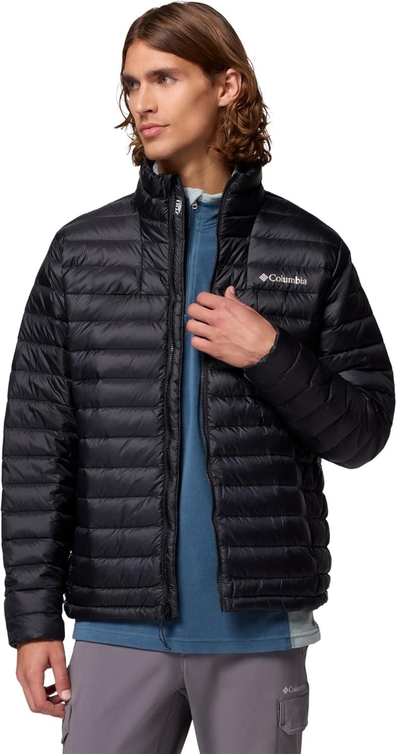 Lightweight, packable, and ultra-warm, this insulated jacket wraps you in 700-fill responsibly sourced down and advanced repellency that shields from rain and stains. It stuffs down into its own pocket so you can take it anywhere. Columbia offers this jacket in multiple colors and sizes. Regular fit.