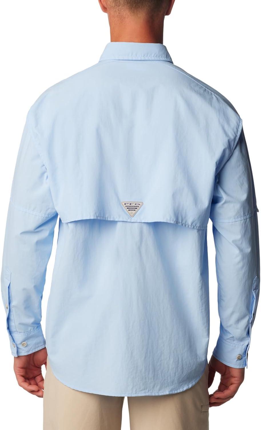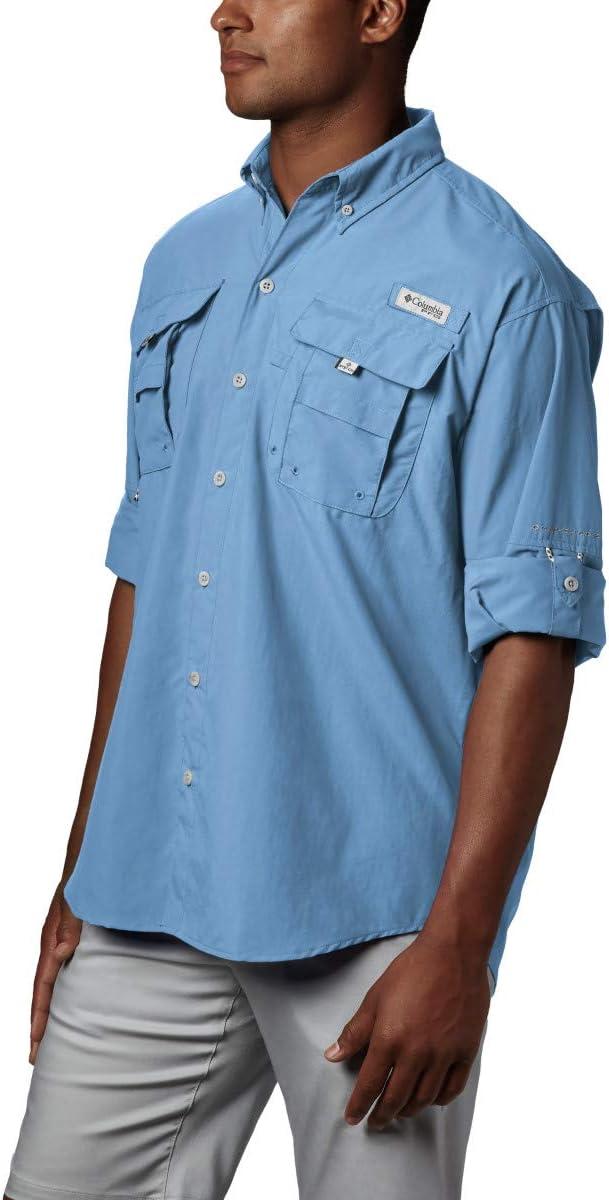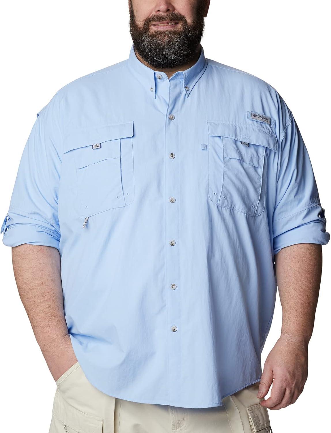 Columbia's PFG line is loved by everyone, but specifically designed with anglers in mind. Its comfort and functionality make this Columbia Men's PFG Bahama II Long Sleeve Shirt a first choice for enjoying a day out on the water and in the sun. The high quality materials used to craft this men's fishing shirt are what make it so special, while its modern classic fit speak to style and comfort. The Bahama II Long Sleeve fishing shirt features some of Columbia's best sun protection technology to help prevent skin damage while outdoors. The fabric is crafted of UPF 30 to protect against harmful UVA and UVB rays, sunburns, and long-term skin damage. The mesh-lined back vents add breathability to the shirt to ensure comfort even when things get hot; the 100% nylon fabric is lightweight and dries quickly to keep you cool. Lastly, this long sleeve shirt's utility features make fishing life a little easier with a rod holder, multiple low-profile pockets, and adjustable roll-up sleeves. Columbia's long sleeve fishing shirt comes in many size categories and colors as well. To ensure the size you choose is right, utilize our sizing chart and the following measurement instructions: For the sleeves, start at the center back of your neck and measure across the shoulder and down to the sleeve. If you come up with a partial number, round up to the next even number. For the chest, measure at the fullest part of the chest, under the armpits and over the shoulder blades, keeping the tape measure firm and level.