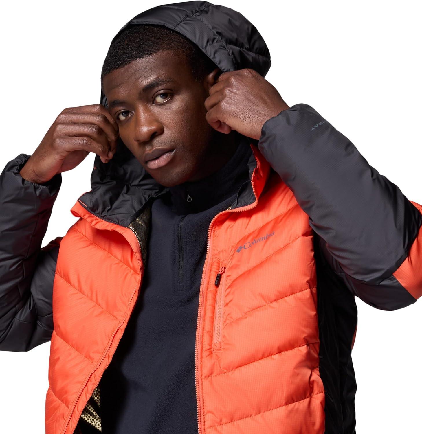 This Columbia men’s hooded puffer brings the heat with recycled synthetic insulation and a thermal-reflective lining that helps hold warmth. It’s repels water and stains, and squishes down for easy packing without losing loft. Columbia offers this jacket in multiple colors and sizes. Extended and tall sizing available. Active fit.