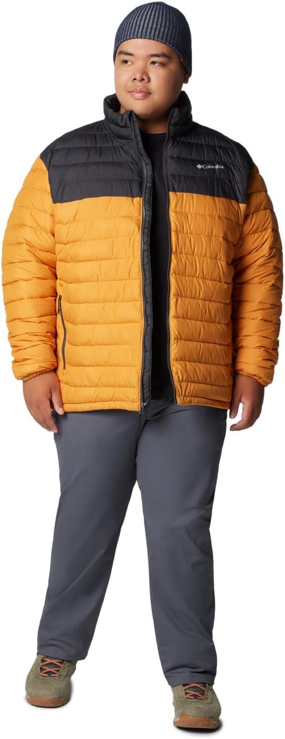 Highly versatile, lightweight, and warm, this Columbia men’s jacket offers rain-and-stain repellency plus a thermal-reflective lining to keep you protected in light rain or snowfall. It's packed with recycled synthetic insulation. Columbia offers this jacket in multiple colors and sizes. Extended and tall sizing available. Active fit.