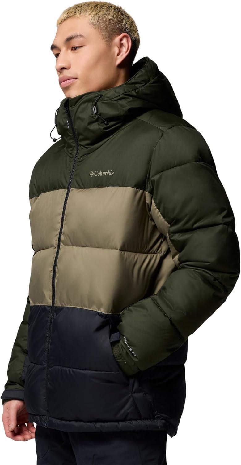 From streets to slopes, this Columbia men’s puffer jacket has your back. It’s warmly insulated, rain-and-stain-resistant, and thermal-lined for supreme warmth. Mountain-ready features include a powder skirt, ski pass pocket, and an adjustable hood. Columbia offers this jacket in multiple colors and sizes. Active fit.