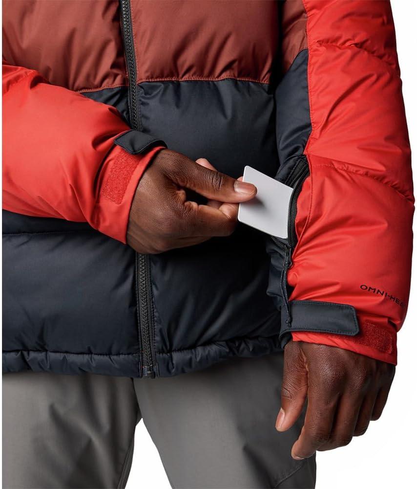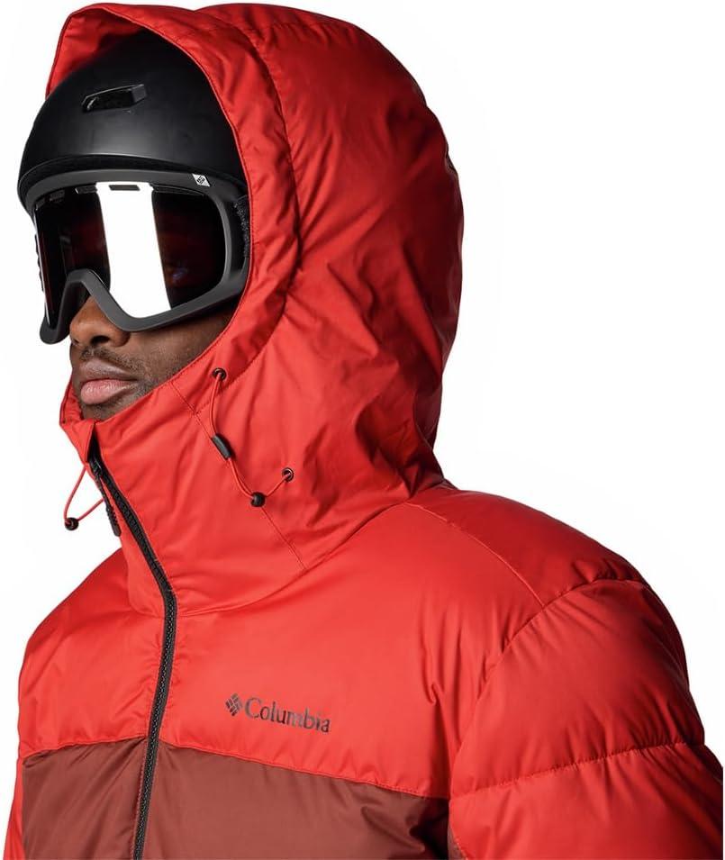From streets to slopes, this Columbia men’s puffer jacket has your back. It’s warmly insulated, rain-and-stain-resistant, and thermal-lined for supreme warmth. Mountain-ready features include a powder skirt, ski pass pocket, and an adjustable hood. Columbia offers this jacket in multiple colors and sizes. Active fit.