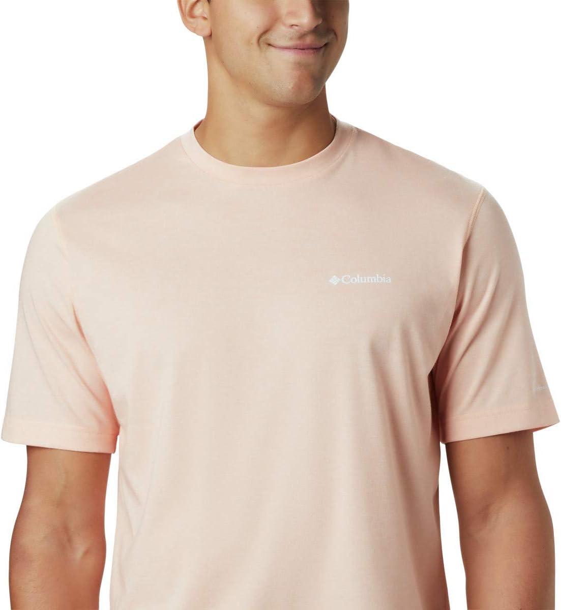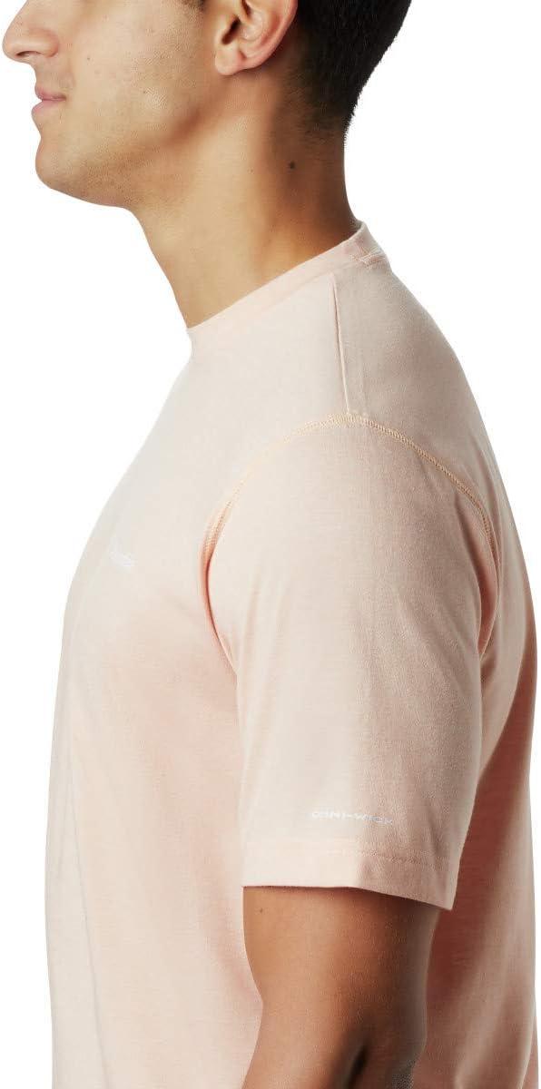 A performance crew built for outdoor activity, featuring moisture-wicking, quick-drying fabric. Made from a soft Omni-Wick blend of heathered jersey cotton and polyester, this shirt is sure to be a favorite for all-day comfort. Columbia offers this short-sleeve crew in multiple colors and sizes. Extended sizing available. Regular Fit.