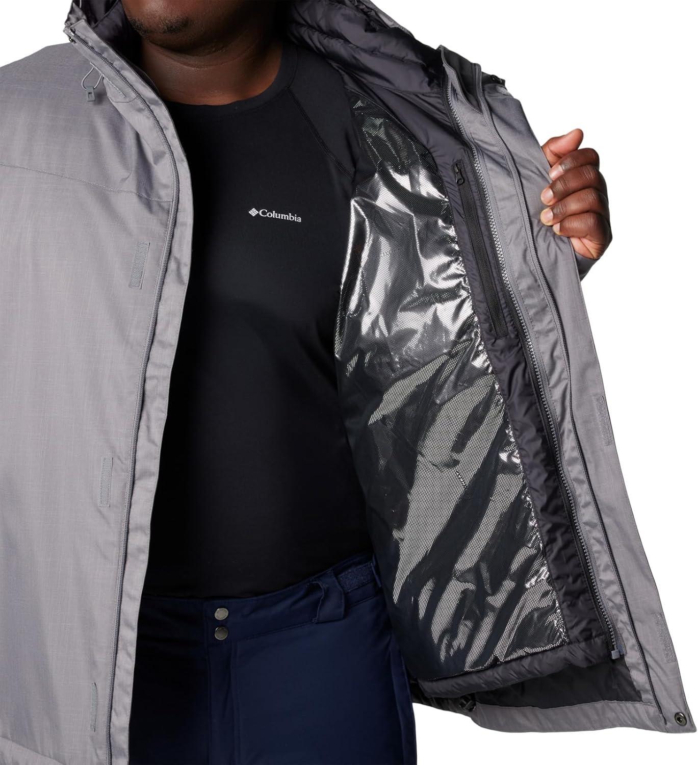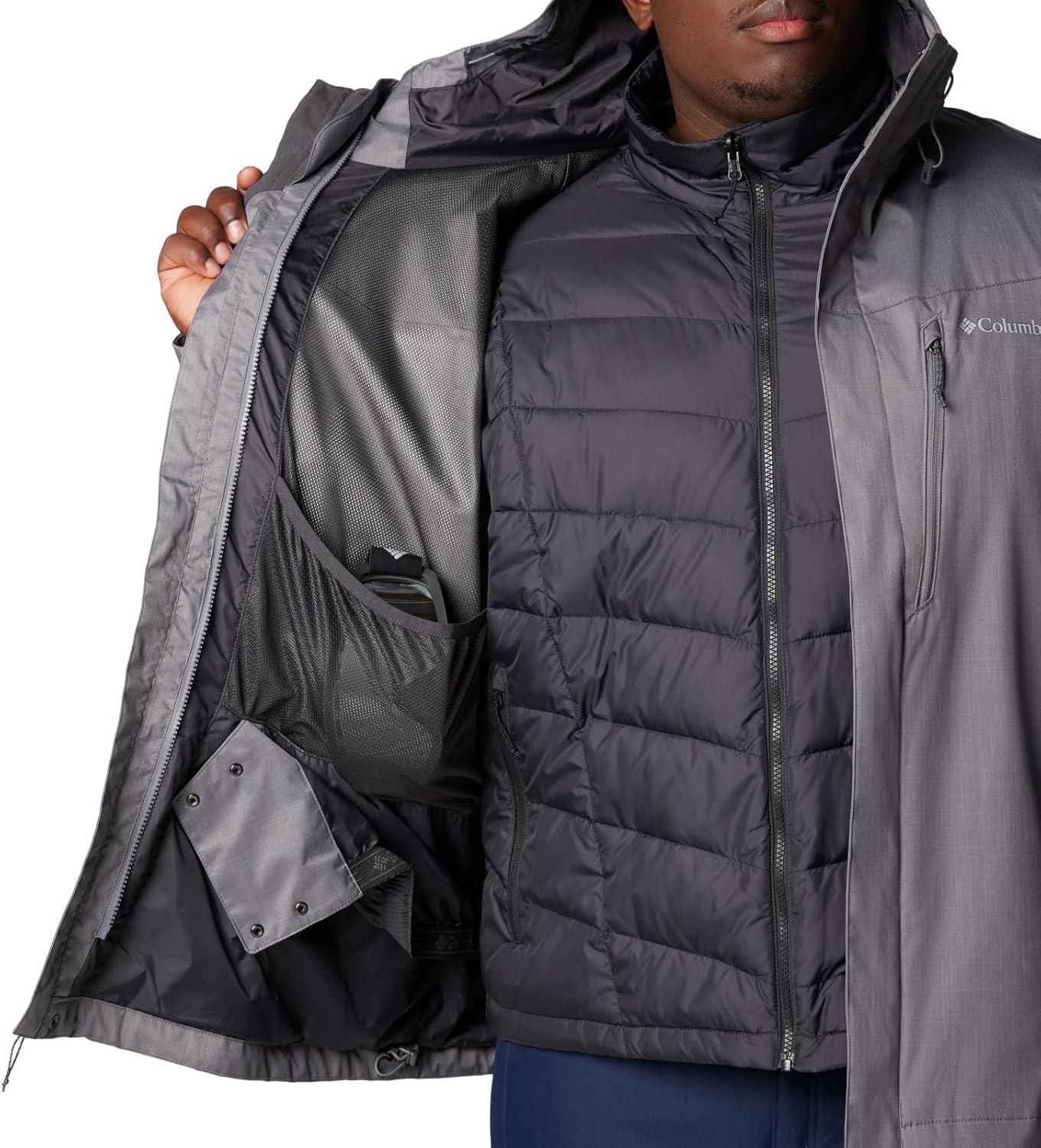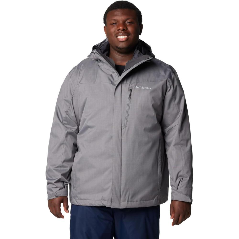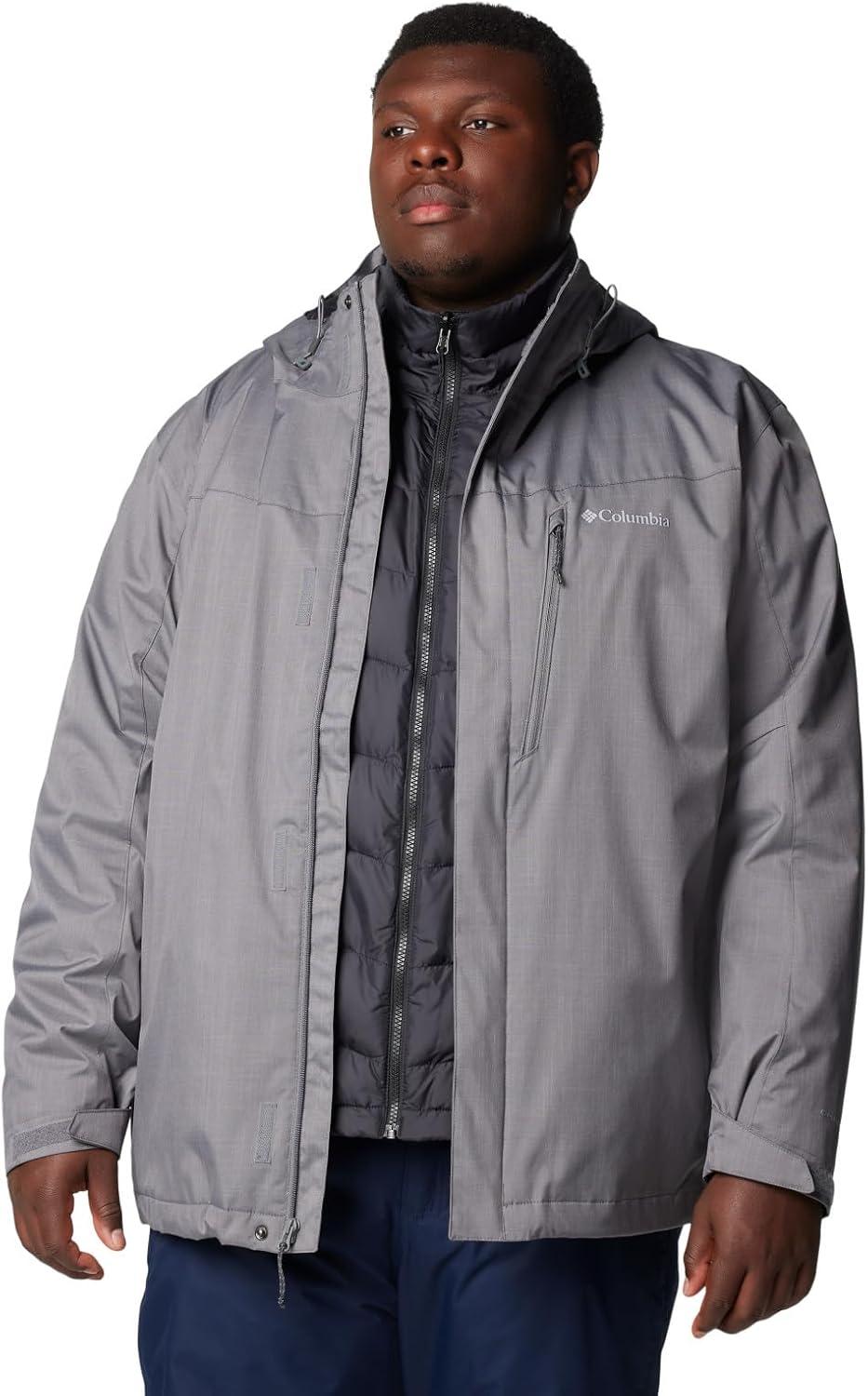 This Columbia men’s 3-in-1 ski jacket lets you wear a fully waterproof-breathable shell or an insulated thermal-reflective liner—or both for serious snow and cold. It’s loaded with recycled insulation and slope-ready features, including a powder skirt, ski pass pocket, and underarm vents. Columbia offers this jacket in multiple colors and sizes. Extended sizing available. Regular fit.