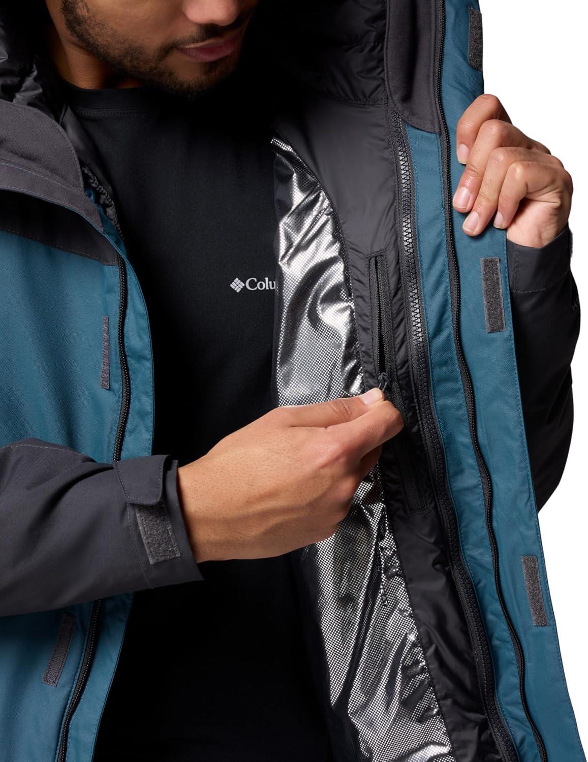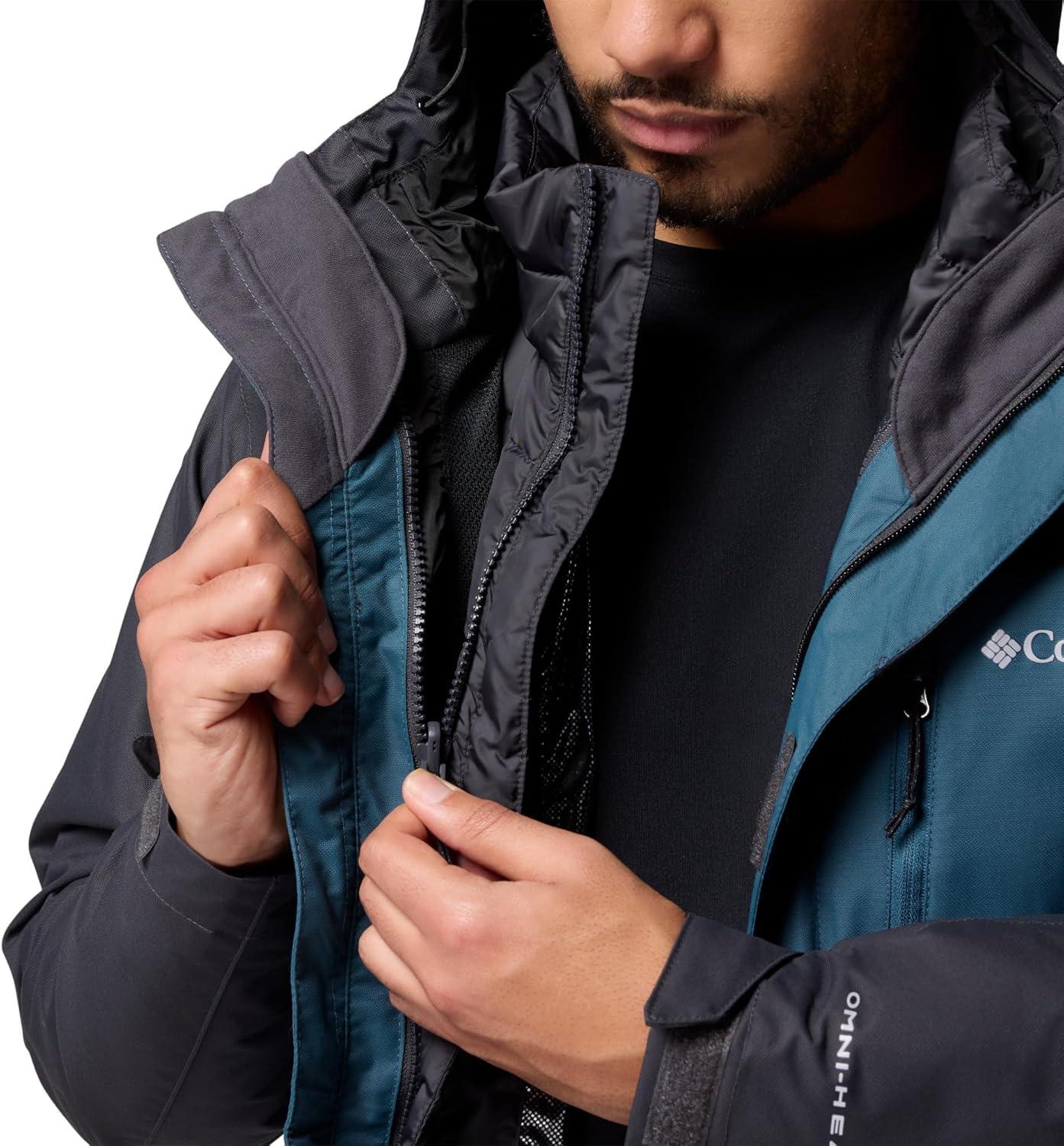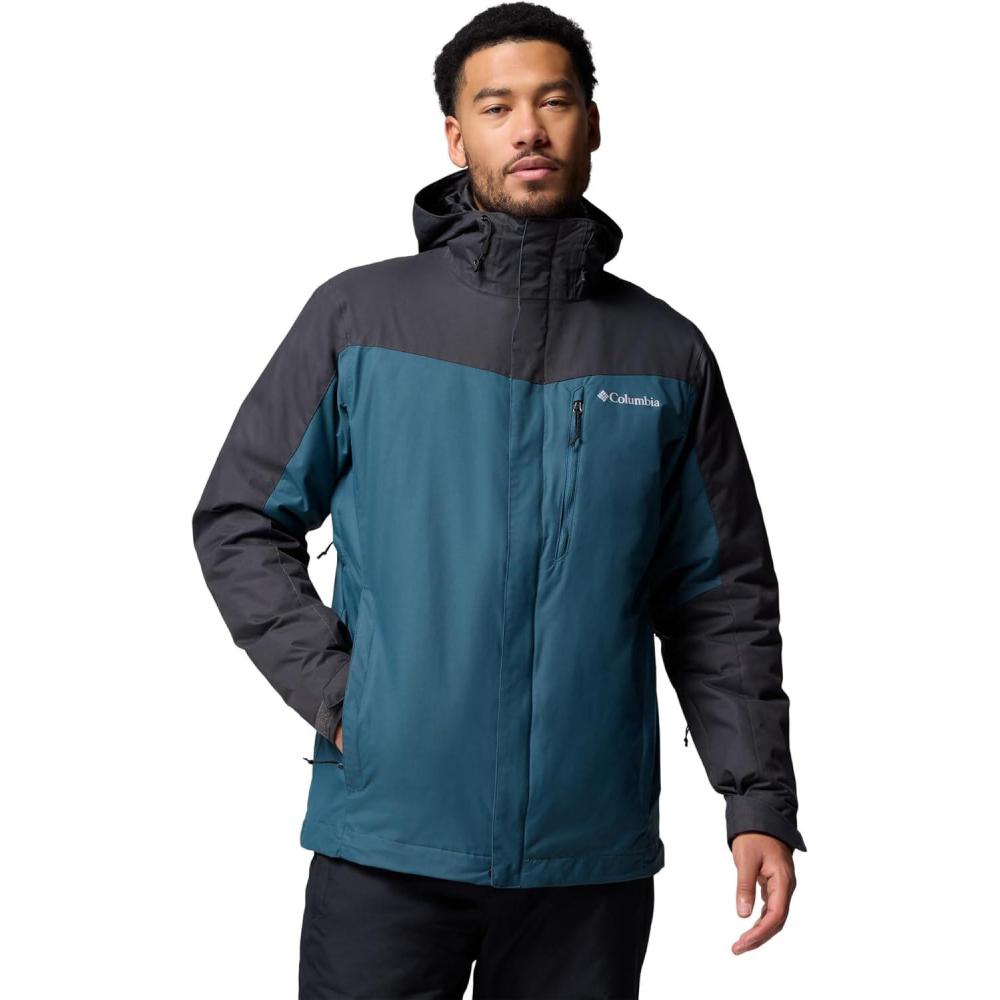 This Columbia men’s 3-in-1 ski jacket lets you wear a fully waterproof-breathable shell or an insulated thermal-reflective liner—or both for serious snow and cold. It’s loaded with recycled insulation and slope-ready features, including a powder skirt, ski pass pocket, and underarm vents. Columbia offers this jacket in multiple colors and sizes. Extended sizing available. Regular fit.