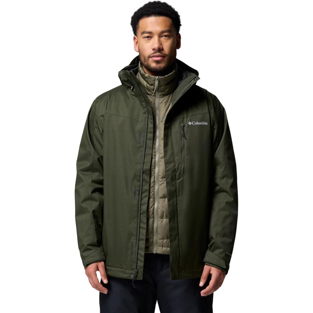 This Columbia men’s 3-in-1 ski jacket lets you wear a fully waterproof-breathable shell or an insulated thermal-reflective liner—or both for serious snow and cold. It’s loaded with recycled insulation and slope-ready features, including a powder skirt, ski pass pocket, and underarm vents. Columbia offers this jacket in multiple colors and sizes. Extended sizing available. Regular fit.