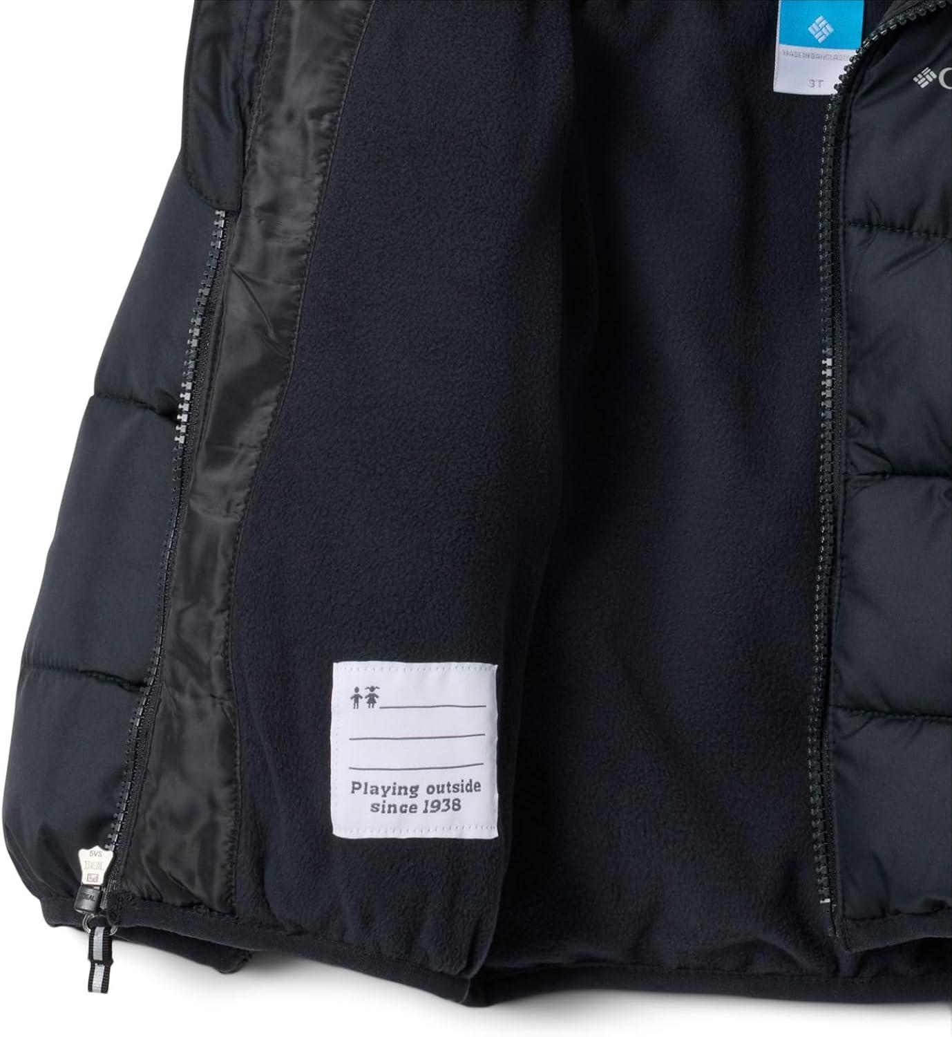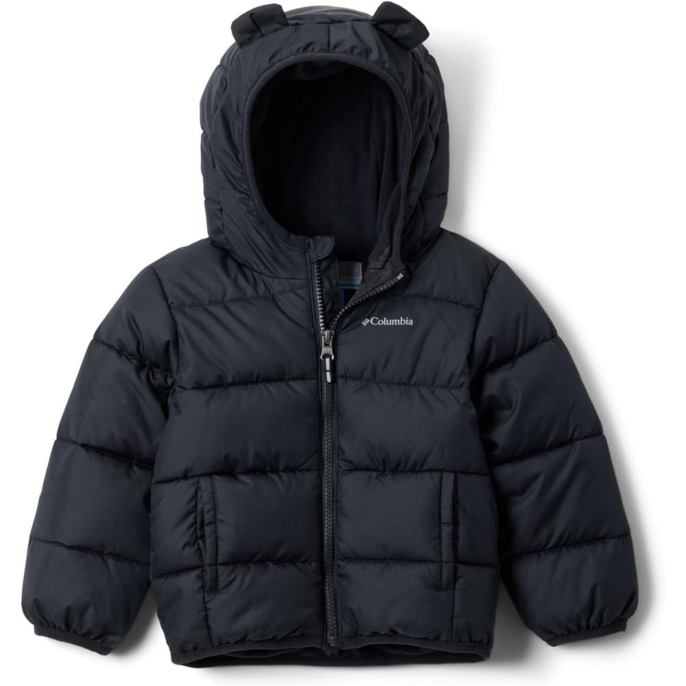 Cozy up your cub in this Columbia toddler puffer jacket, made with a soft fleece lining and a rain-and-stain resistant exterior. With tiny bear ears on the hood, it's as adorable as it is warm. Columbia offers this jacket in multiple colors and sizes. Regular fit.