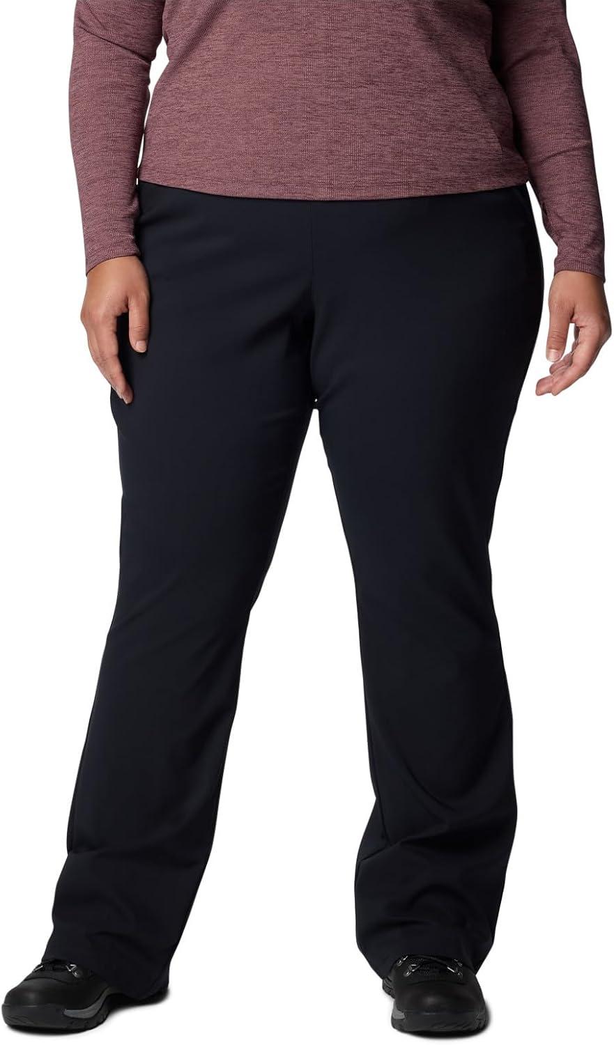 Be ready for anything, anytime in these Columbia women’s bootcut pants, made with comfort stretch fabric that protects from the sun and repels rain and stains. They offer a wide waistband, a subtle flare, and a zip-closed stash pocket for keys, cards, and other essentials. Columbia offers these pants in multiple sizes. Extended sizing available. Available in various inseam lengths. Active fit.