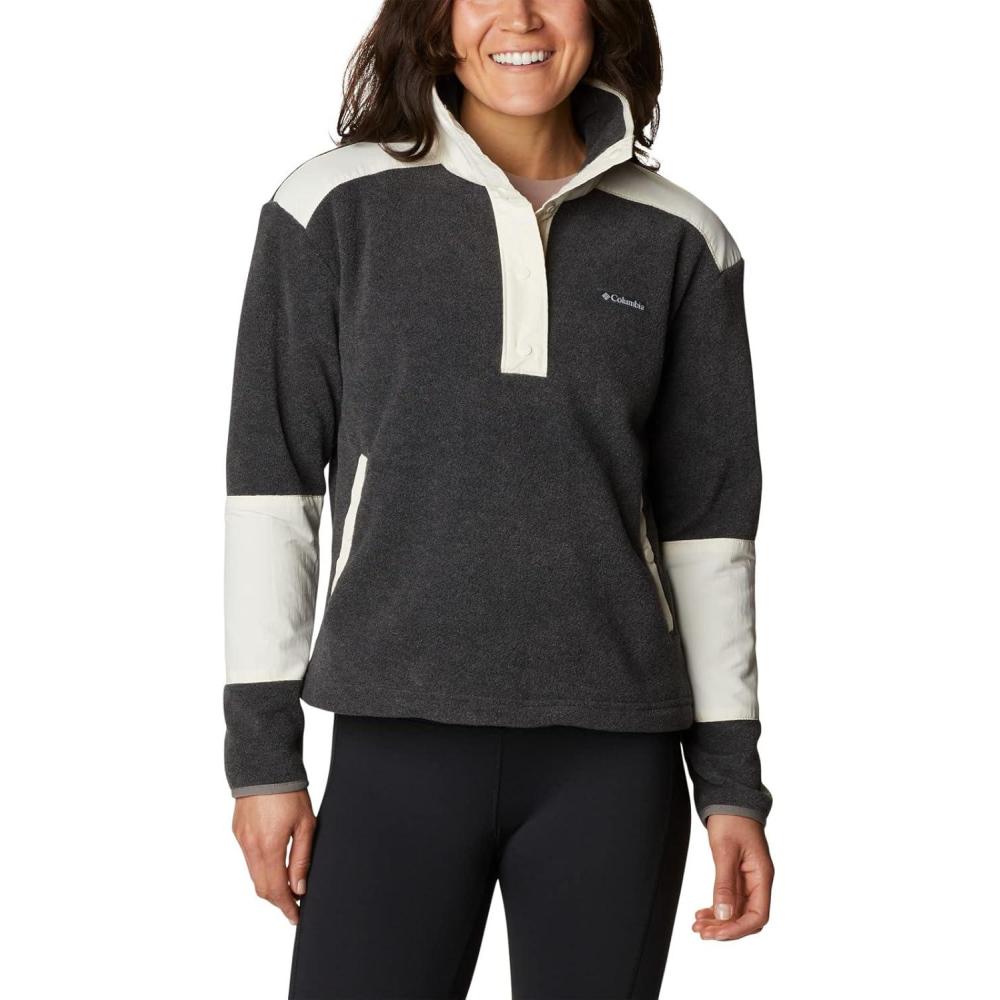 Columbia Women’s Benton Springs Crop Pullover(Charcoal Heather/Chalk)
