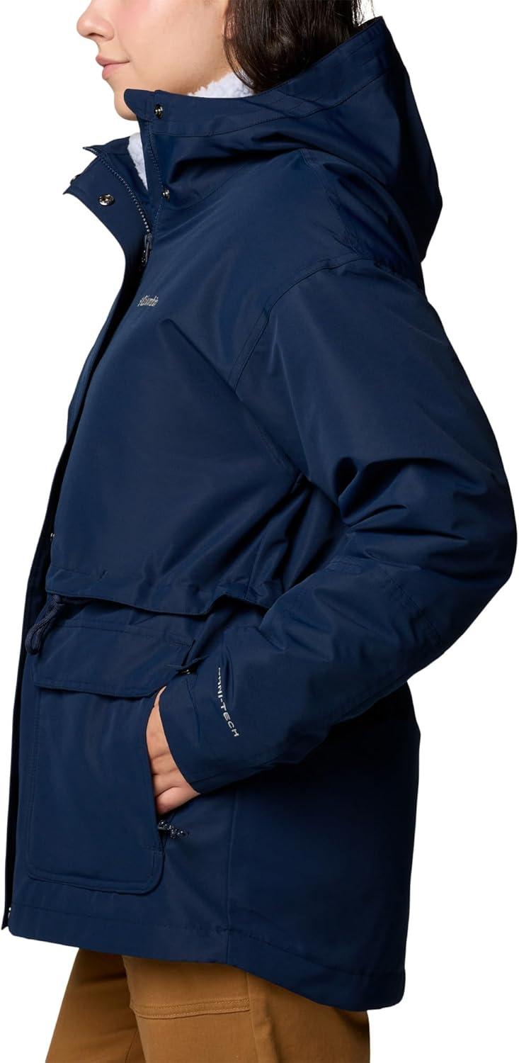 Get more versatility, more style, more warmth. This Columbia women's 3-in-1 jacket system features a waterproof-breathable hooded shell, plus a fluffy Sherpa fleece inner layer with a thermal-reflective lining that helps capture heat. You can wear each jacket on its own or combine them for maximum cold-weather coverage. Columbia offers this jacket in multiple colors and sizes. Active fit.