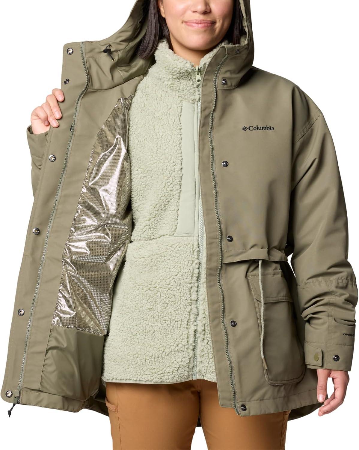 Get more versatility, more style, more warmth. This Columbia women's 3-in-1 jacket system features a waterproof-breathable hooded shell, plus a fluffy Sherpa fleece inner layer with a thermal-reflective lining that helps capture heat. You can wear each jacket on its own or combine them for maximum cold-weather coverage. Columbia offers this jacket in multiple colors and sizes. Active fit.