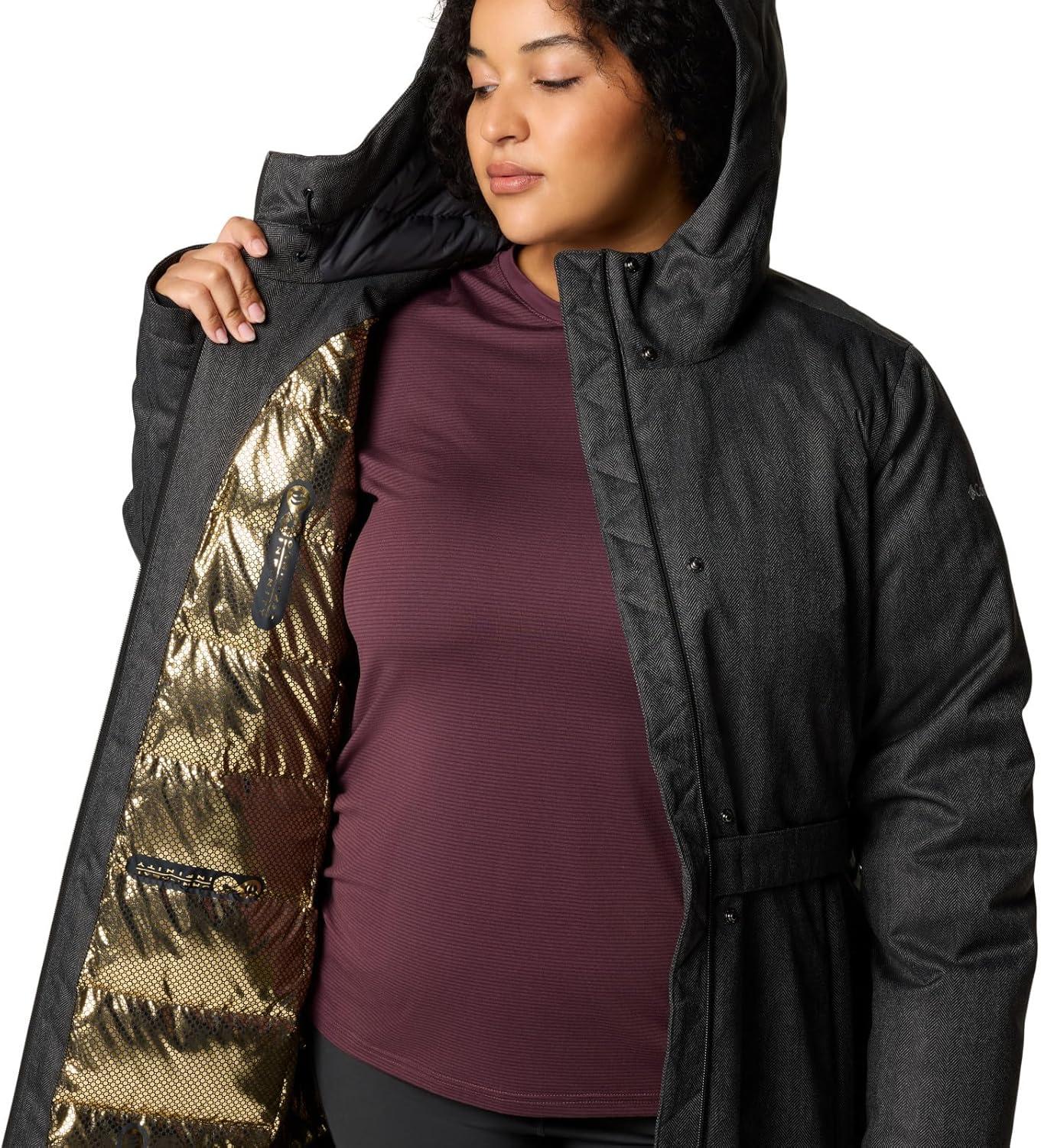 A trusty companion in the cold, this Columbia women’s down jacket delivers max warmth and weather protection, with details you’ll appreciate. It’s waterproof-breathable, thermal-lined, and packed with plush 650-fill responsibly sourced down. The two-way front zipper and back pleat offer great mobility for making moves, while the hood and belt can be adjusted to your liking. Columbia offers this jacket in multiple colors and sizes. Extended sizing available. Regular fit.