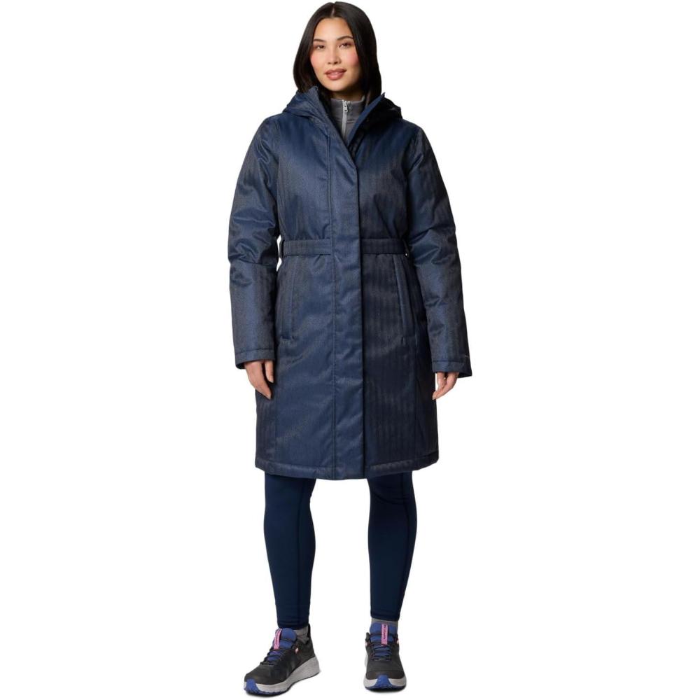 A trusty companion in the cold, this Columbia women’s down jacket delivers max warmth and weather protection, with details you’ll appreciate. It’s waterproof-breathable, thermal-lined, and packed with plush 650-fill responsibly sourced down. The two-way front zipper and back pleat offer great mobility for making moves, while the hood and belt can be adjusted to your liking. Columbia offers this jacket in multiple colors and sizes. Extended sizing available. Regular fit.