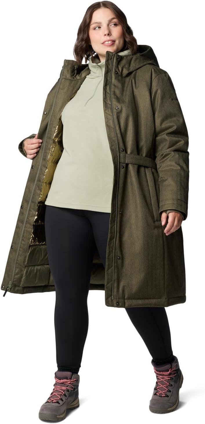 A trusty companion in the cold, this Columbia women’s down jacket delivers max warmth and weather protection, with details you’ll appreciate. It’s waterproof-breathable, thermal-lined, and packed with plush 650-fill responsibly sourced down. The two-way front zipper and back pleat offer great mobility for making moves, while the hood and belt can be adjusted to your liking. Columbia offers this jacket in multiple colors and sizes. Extended sizing available. Regular fit.