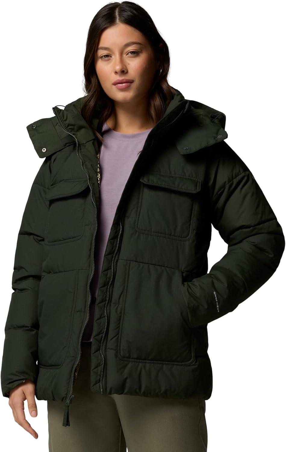 Stay hello to warmth with this Columbia women’s jacket featuring a rain-and-stain-resistant exterior and thermal-reflective lining that helps retain heat. Recycled synthetic insulation packs in an extra layer of warmth and unmatched comfort. It’s a go-to for getting out there in the cold, with a removable hood, drawcord waist, and chest pockets for additional storage. Columbia offers this jacket in multiple colors and sizes. Extended sizing available. Regular fit.