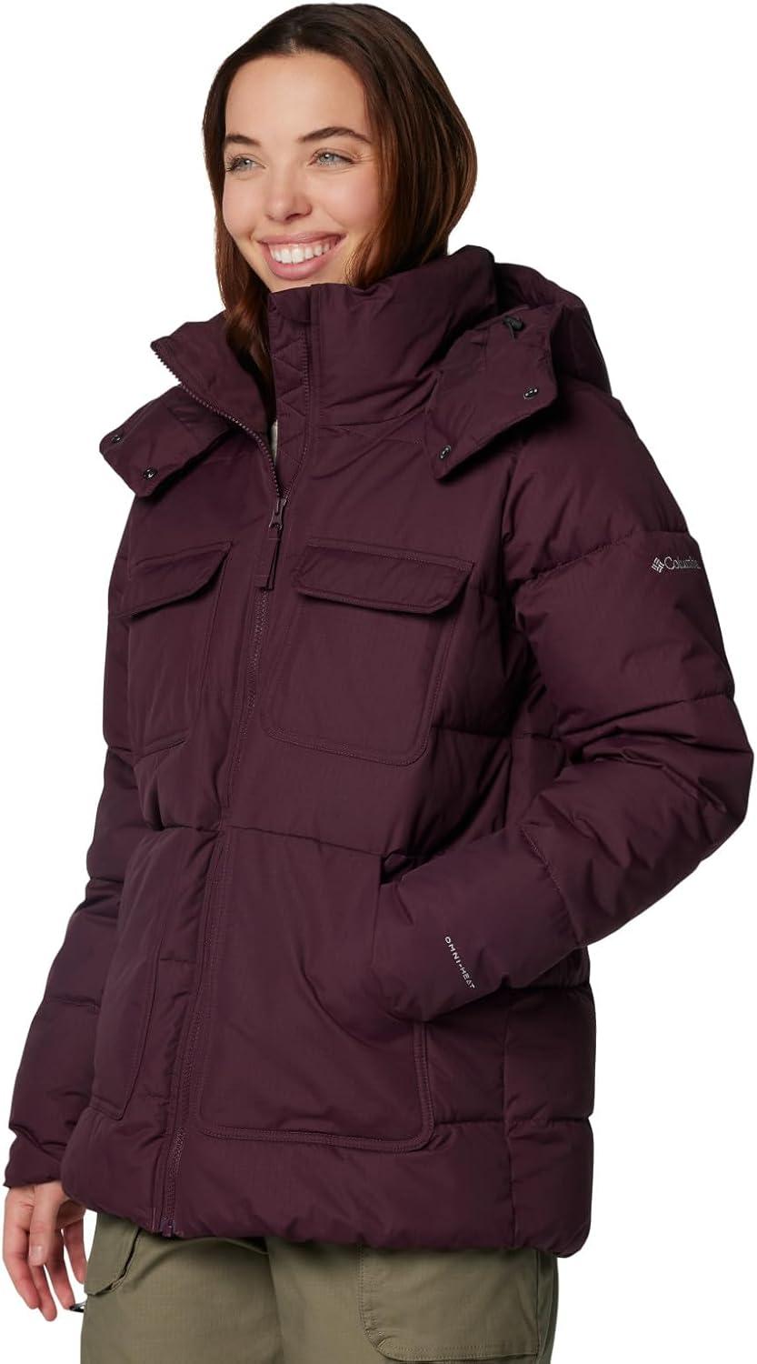 Stay hello to warmth with this Columbia women’s jacket featuring a rain-and-stain-resistant exterior and thermal-reflective lining that helps retain heat. Recycled synthetic insulation packs in an extra layer of warmth and unmatched comfort. It’s a go-to for getting out there in the cold, with a removable hood, drawcord waist, and chest pockets for additional storage. Columbia offers this jacket in multiple colors and sizes. Extended sizing available. Regular fit.