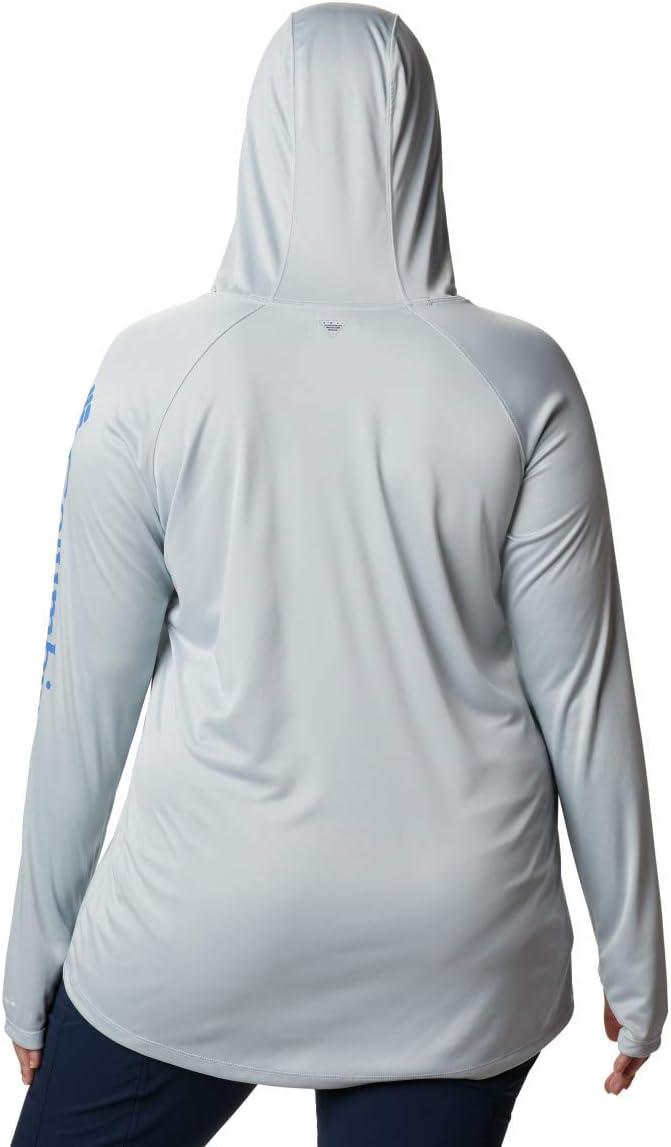 Columbia Women’s PFG Tidal Tee Hoodie, UV Protection, Moisture-Wicking(City Grey/Mint Cay Logo)