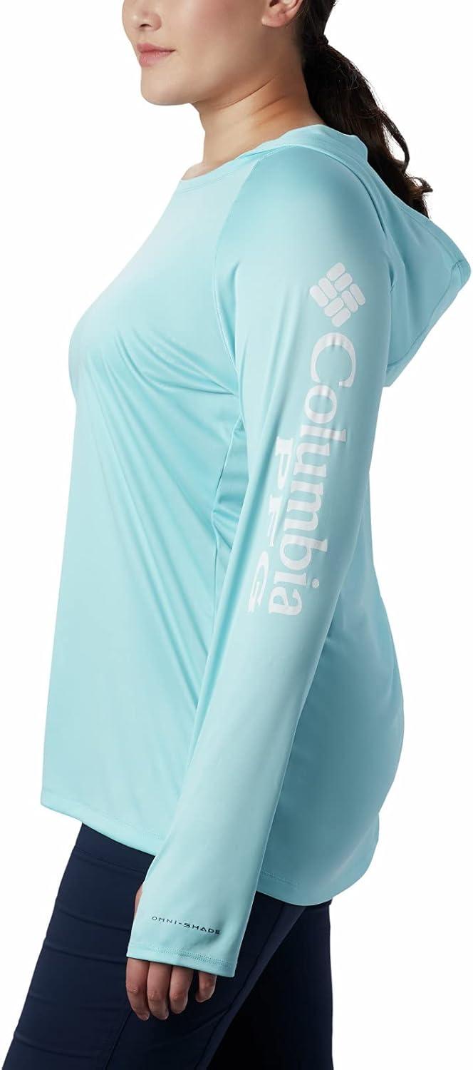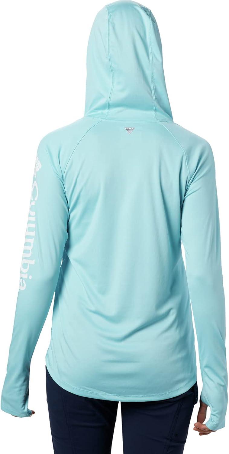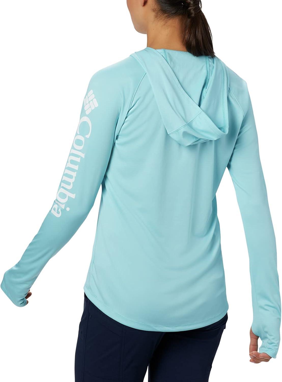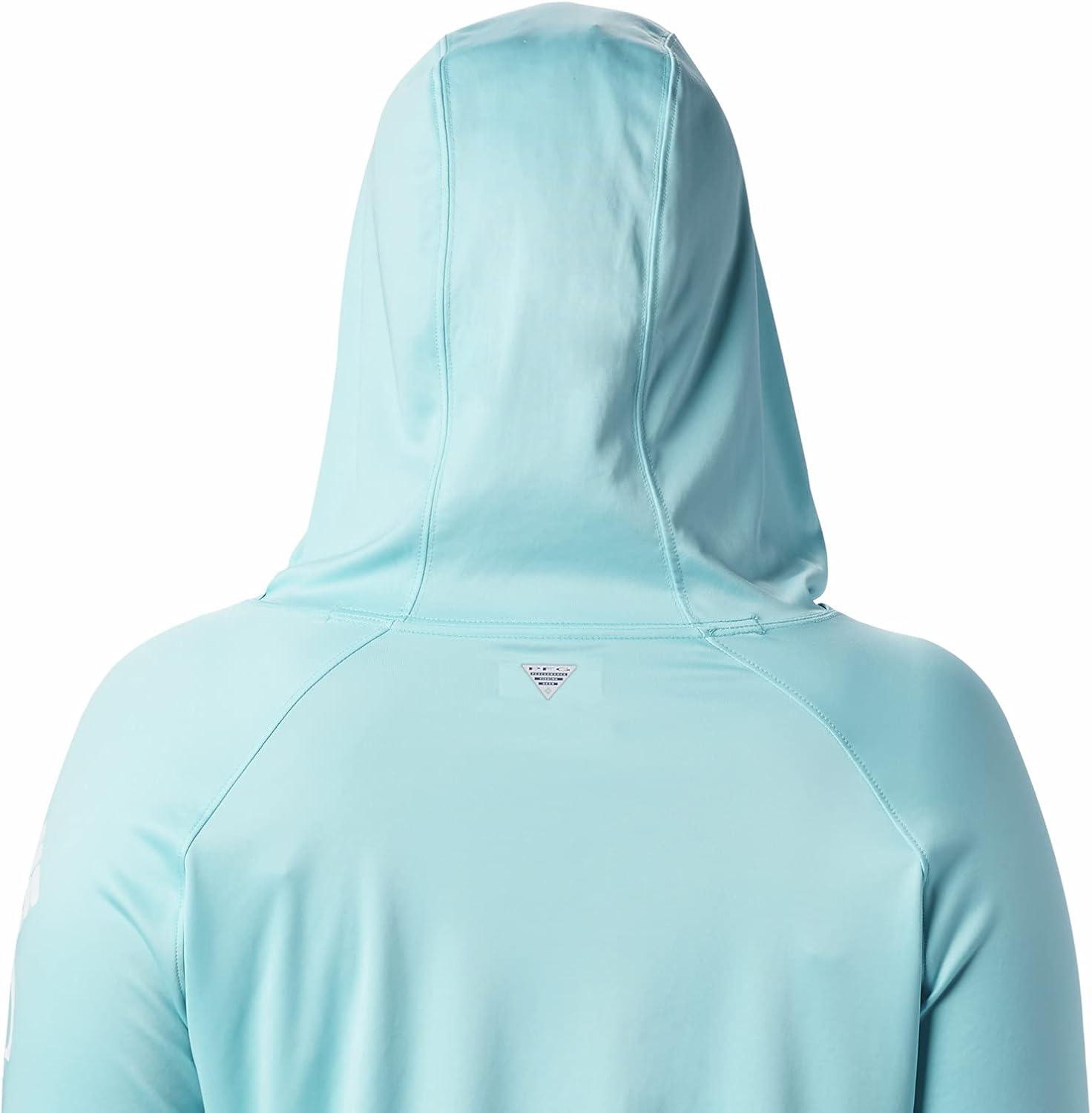 Columbia Women’s PFG Tidal Tee Hoodie, UV Protection, Moisture-Wicking(Clear Blue/White Logo)