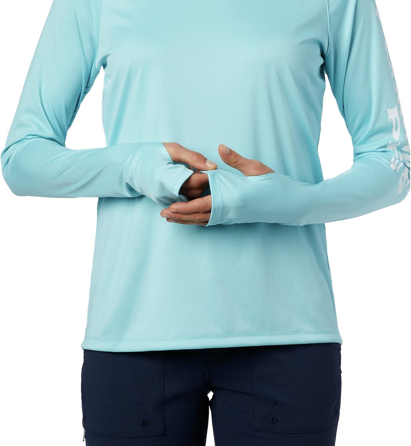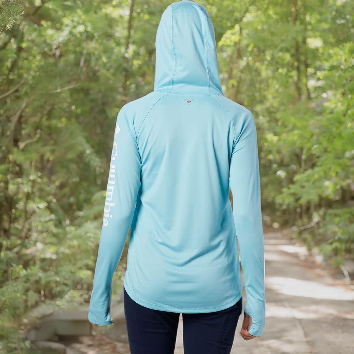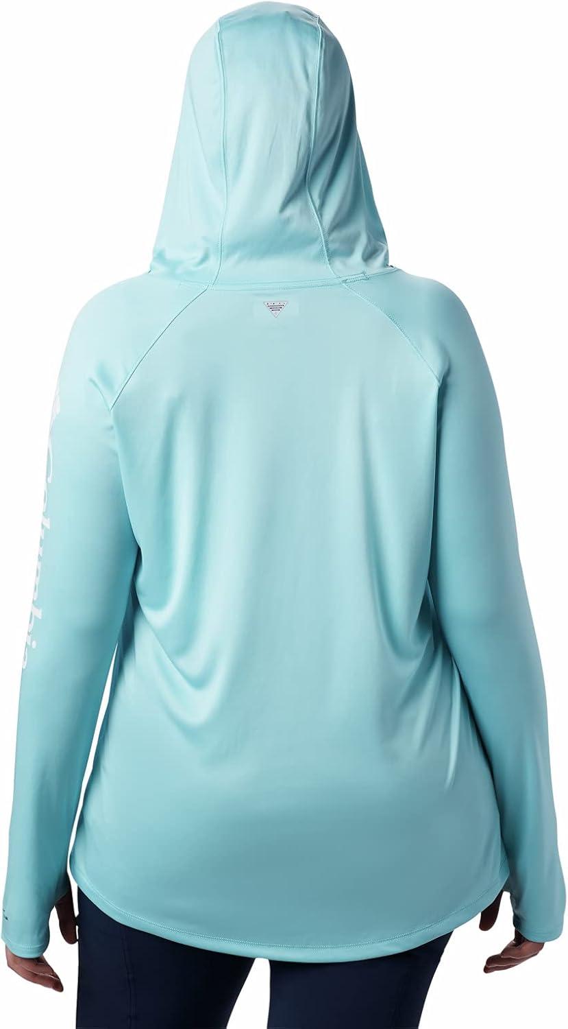 Columbia Women’s PFG Tidal Tee Hoodie, UV Protection, Moisture-Wicking(Clear Blue/White Logo)