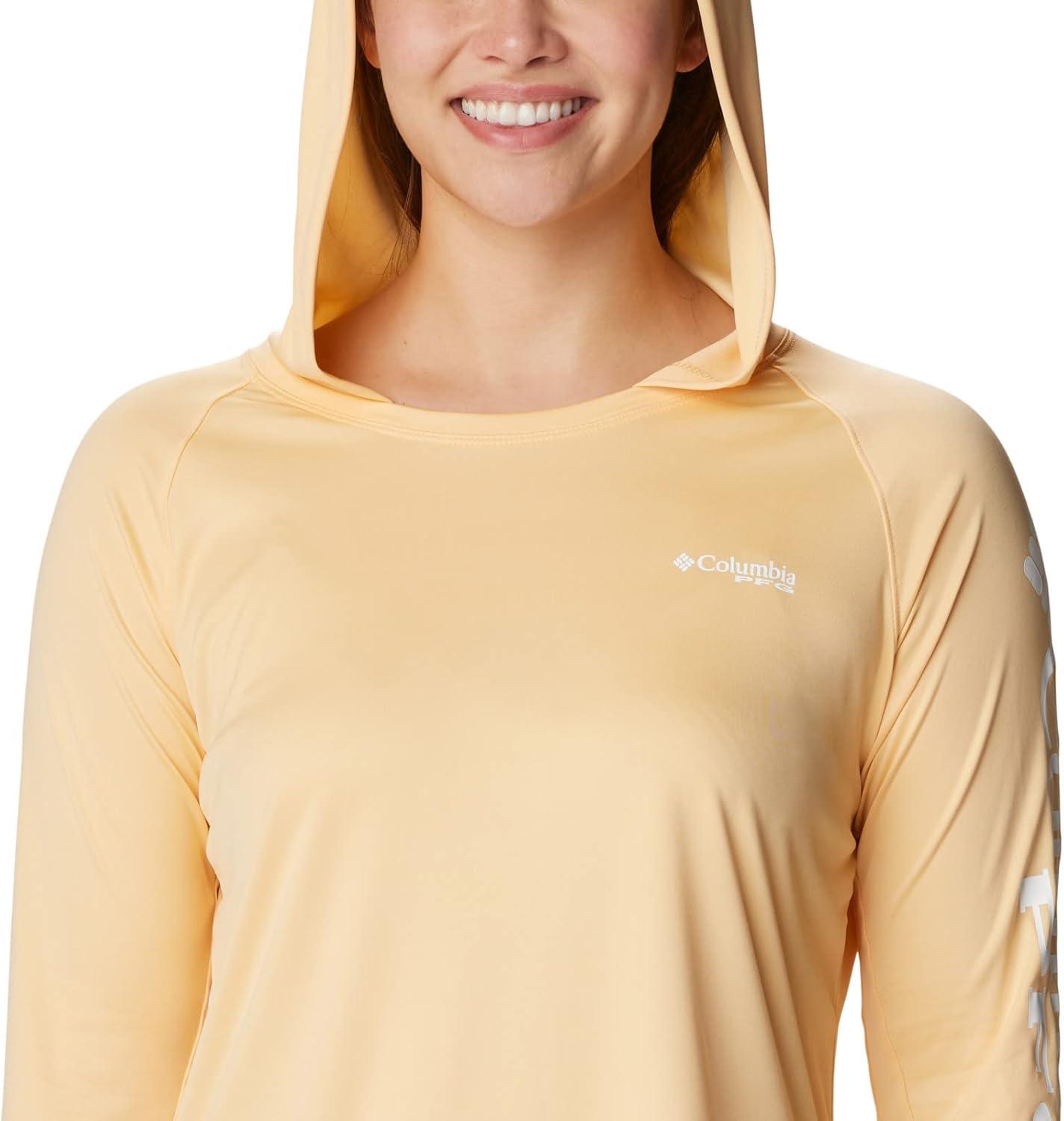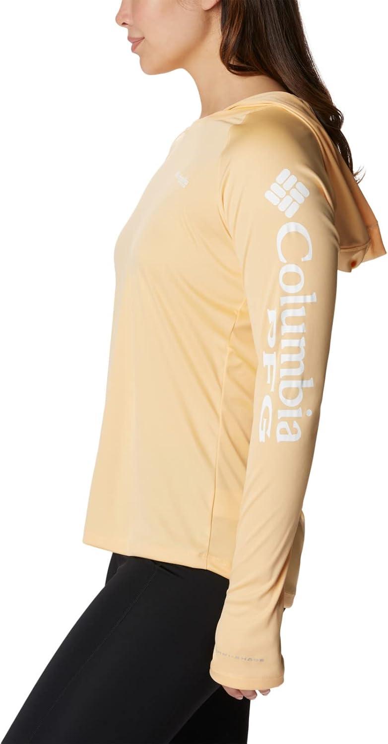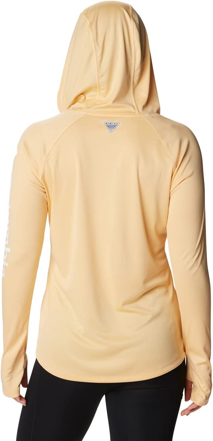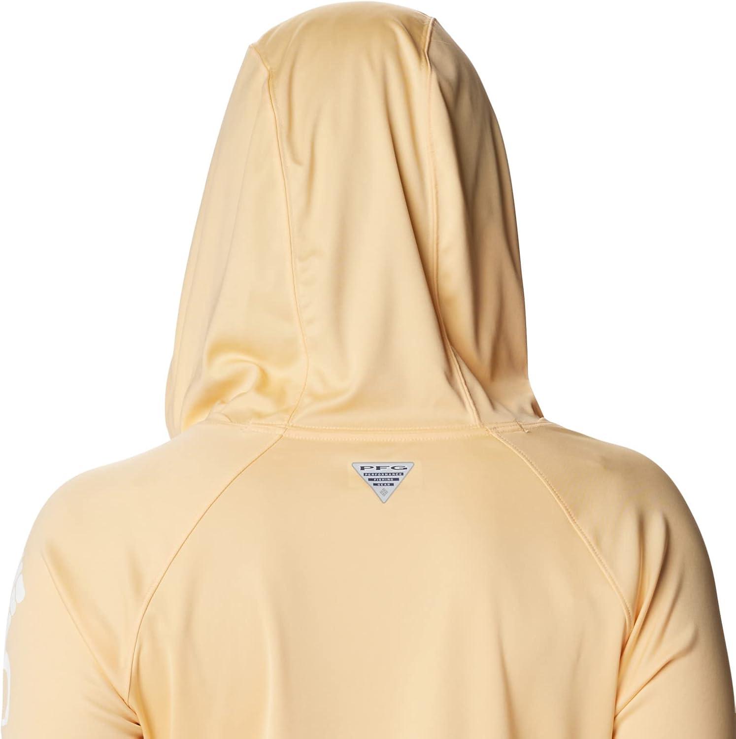 Columbia Women’s PFG Tidal Tee Hoodie, UV Protection, Moisture-Wicking(Cocoa Butter/White Logo)