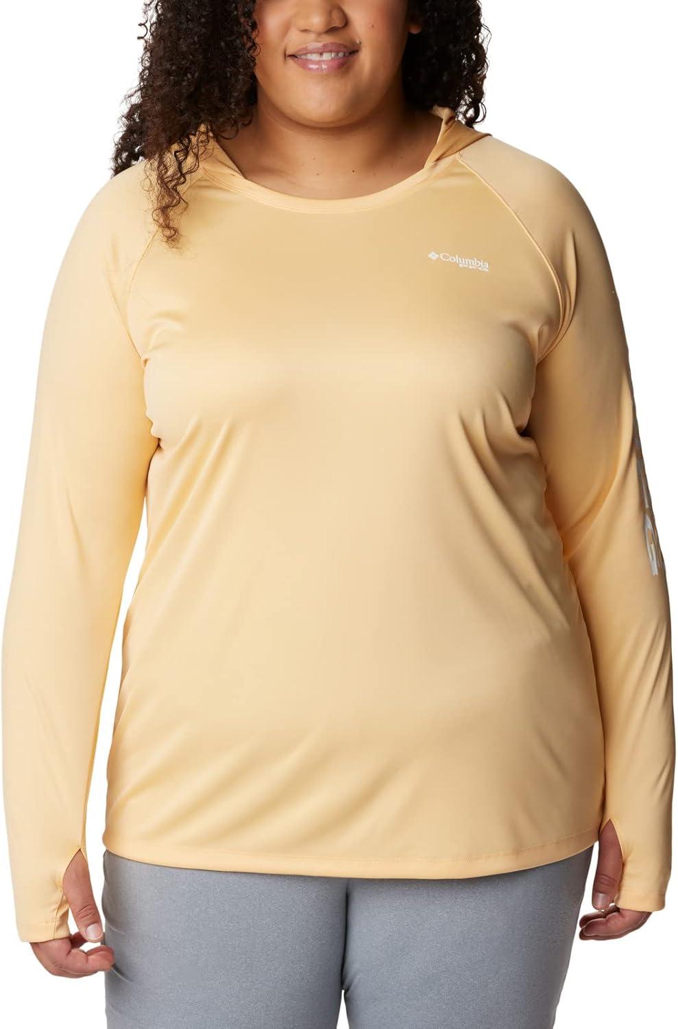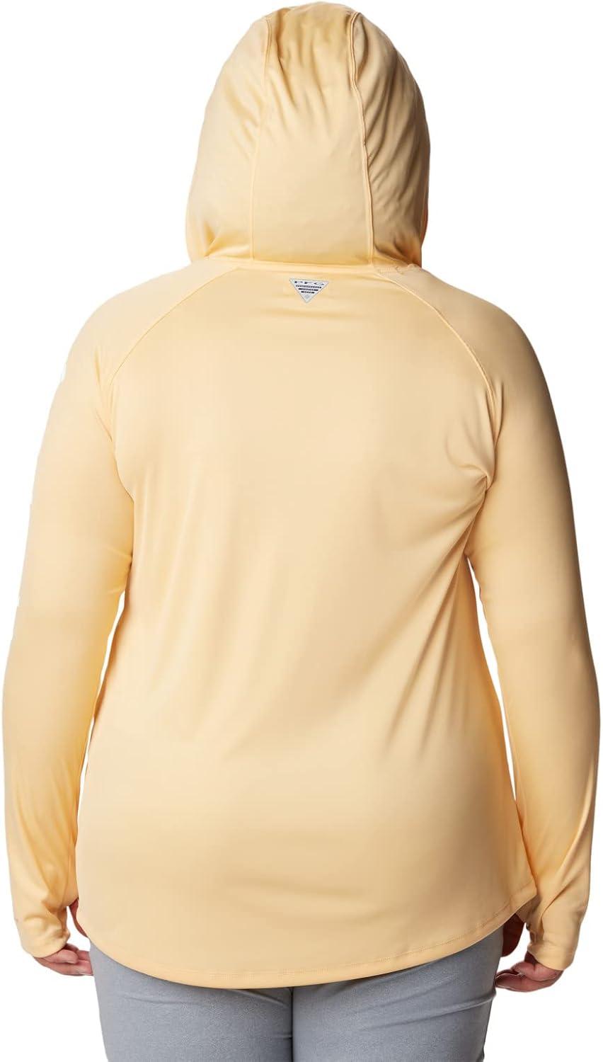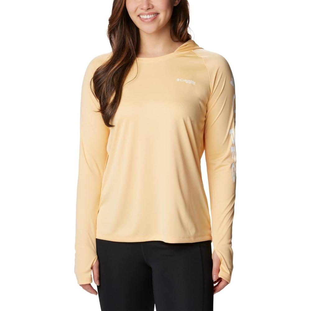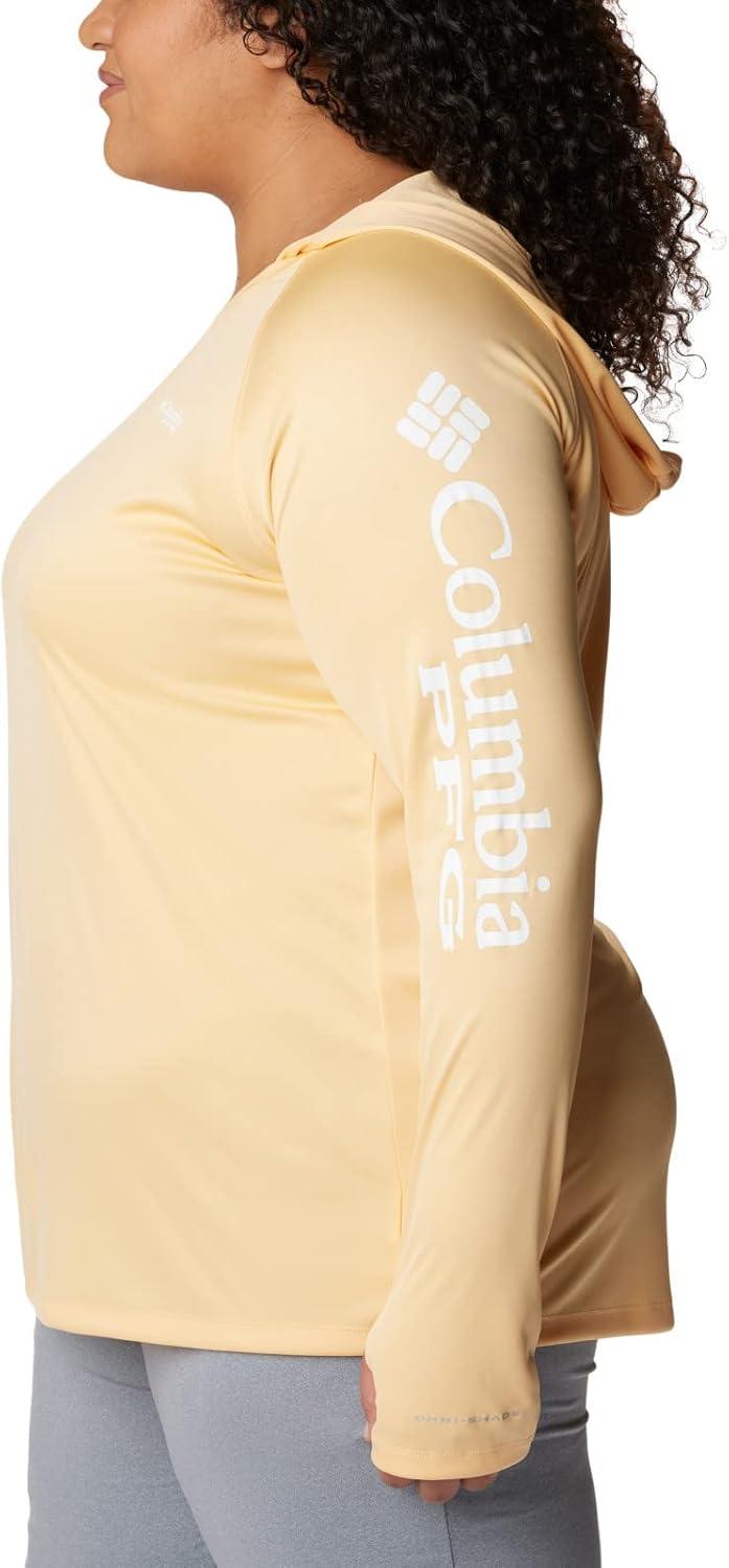 Columbia Women’s PFG Tidal Tee Hoodie, UV Protection, Moisture-Wicking(Cocoa Butter/White Logo)