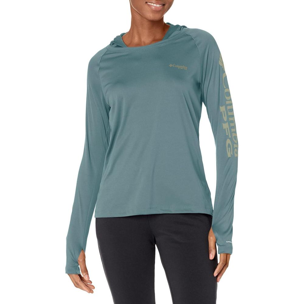 Get your hands on our exclusive Columbia Women’s PFG Tidal Tee Hoodie, UV Protection, Moisture-Wicking(Metal/Safari Logo) collection, now at a discounted price.