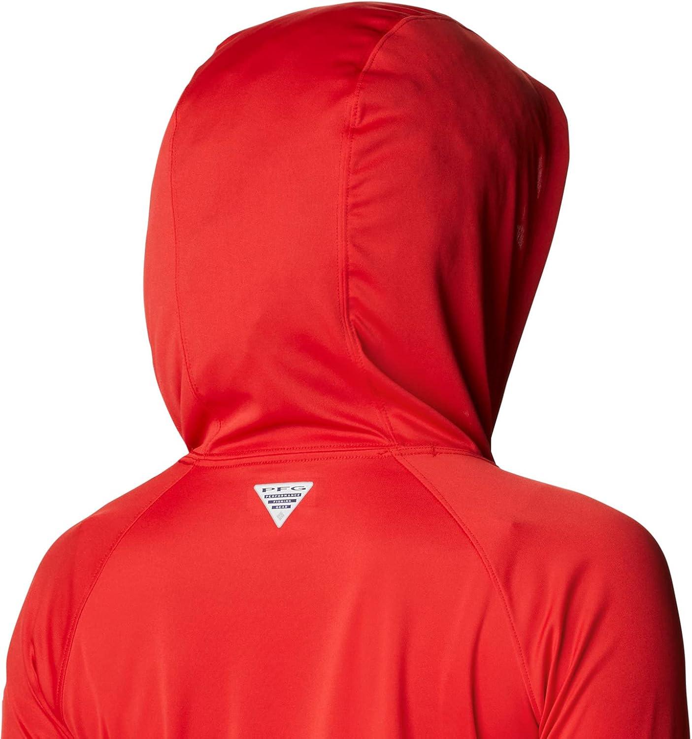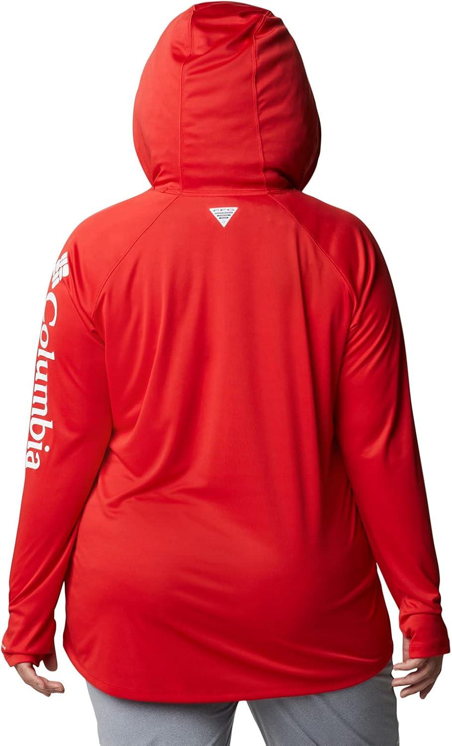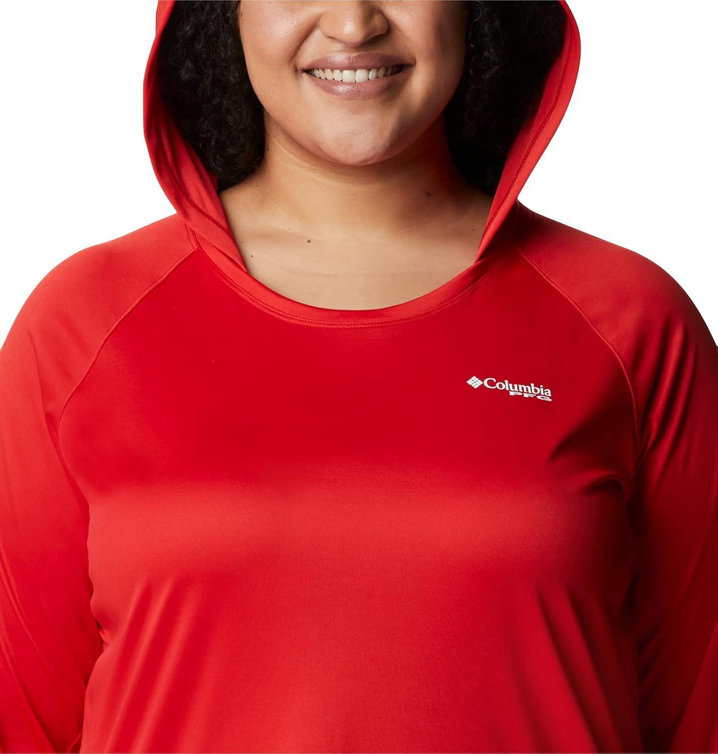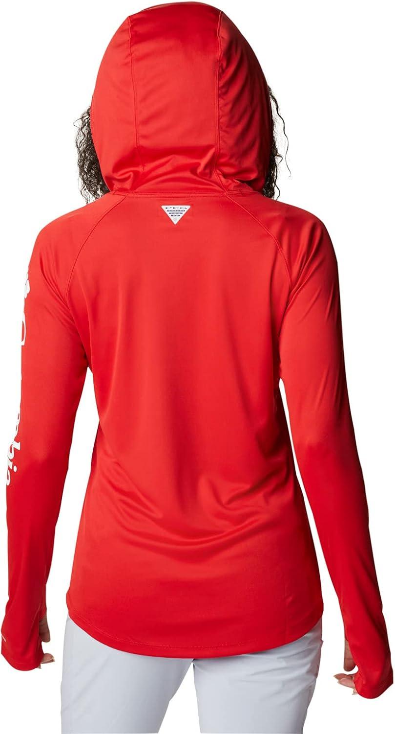 Columbia Women’s PFG Tidal Tee Hoodie, UV Protection, Moisture-Wicking(Red Spark/White Logo)