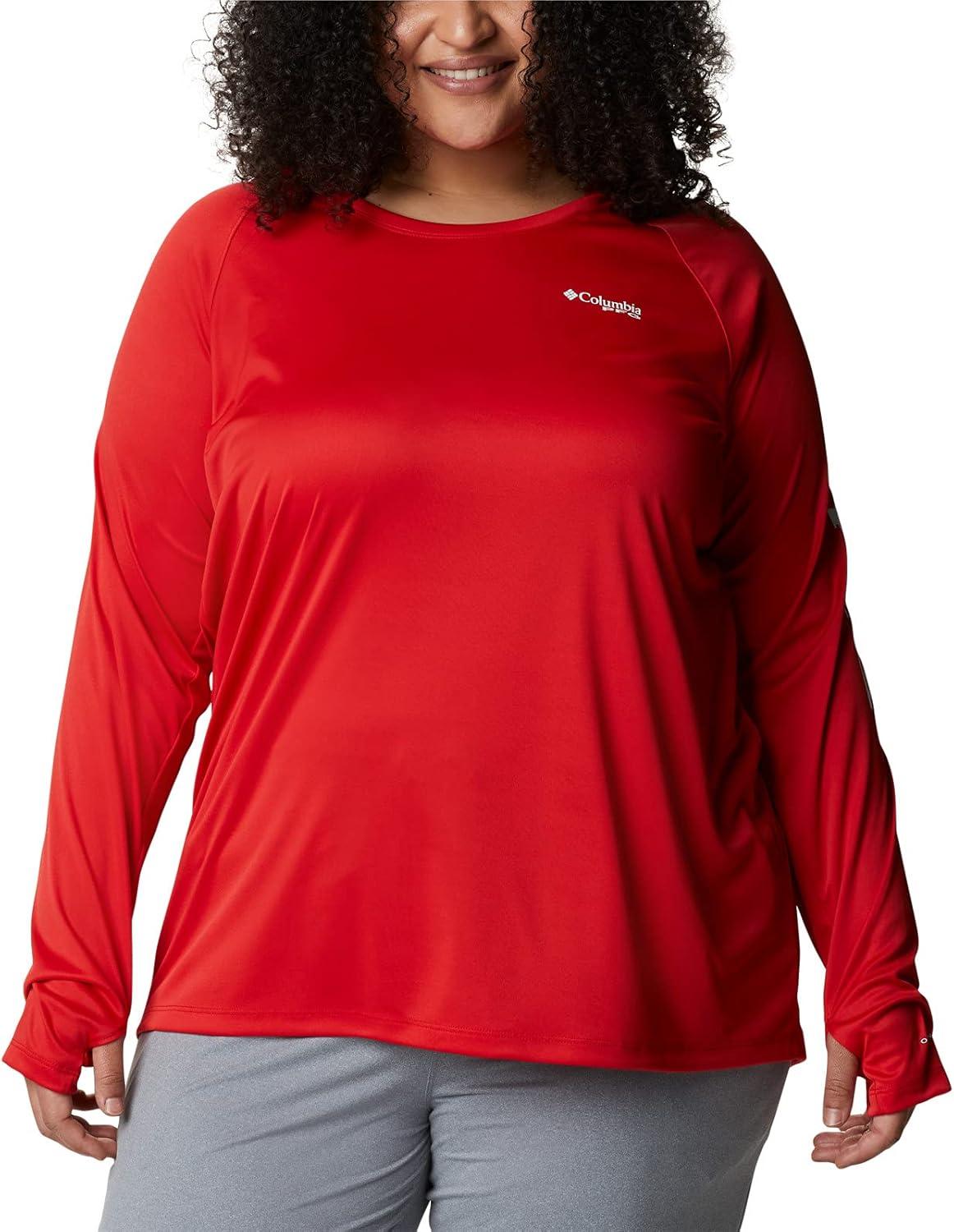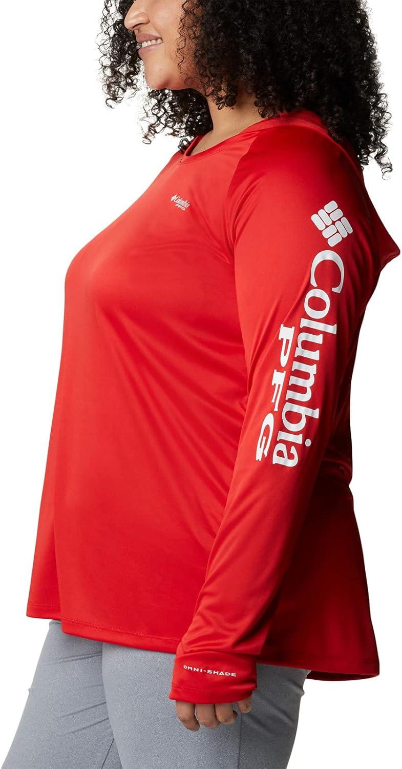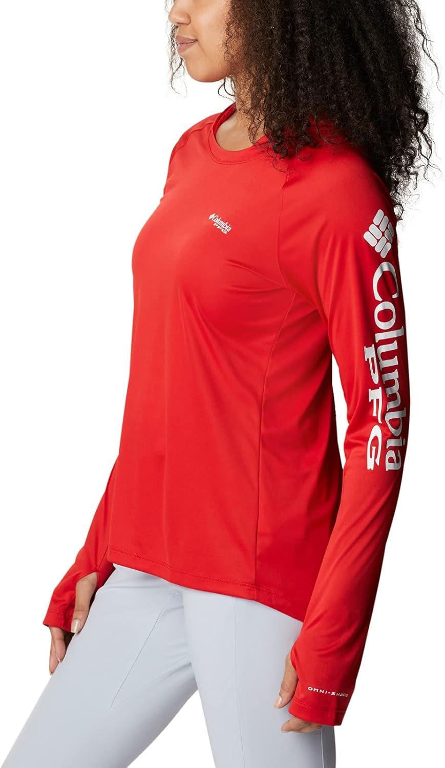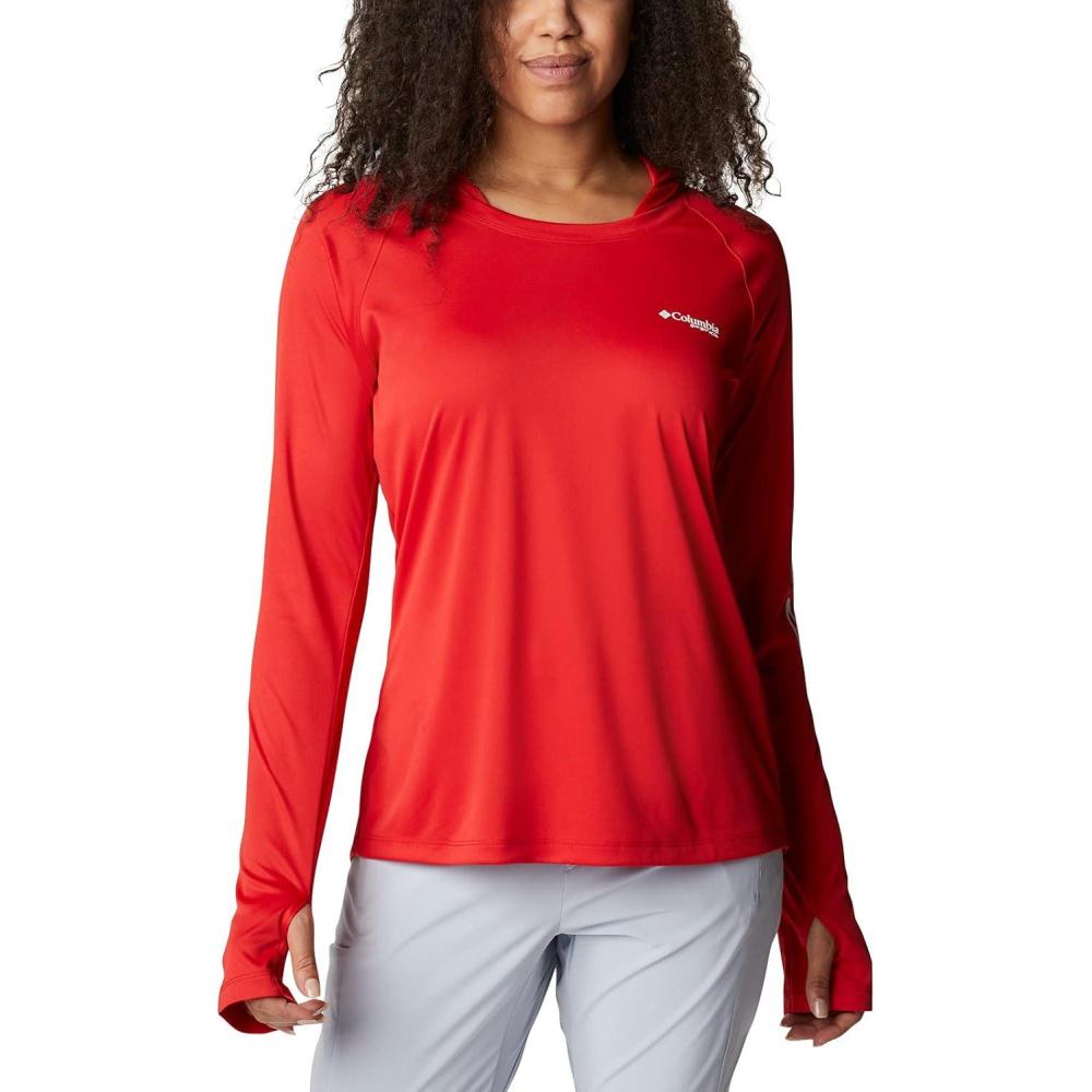 Columbia Women’s PFG Tidal Tee Hoodie, UV Protection, Moisture-Wicking(Red Spark/White Logo)
