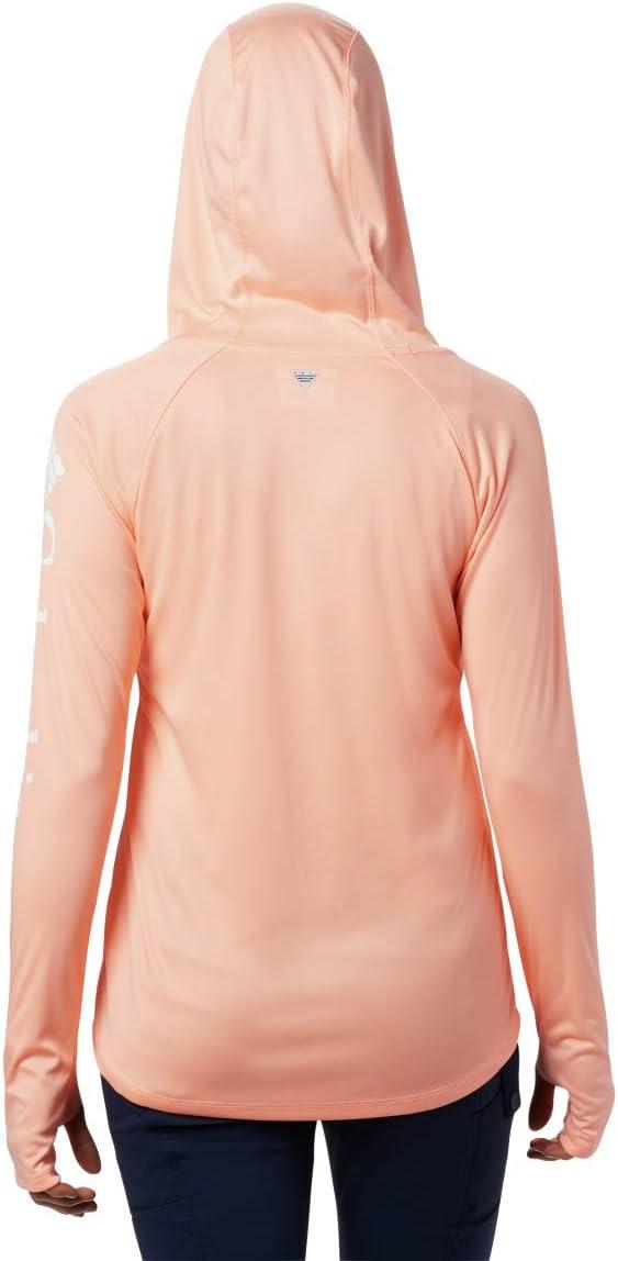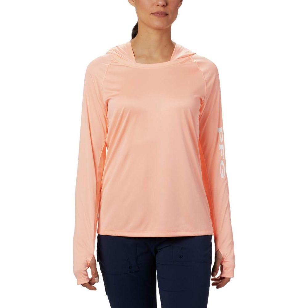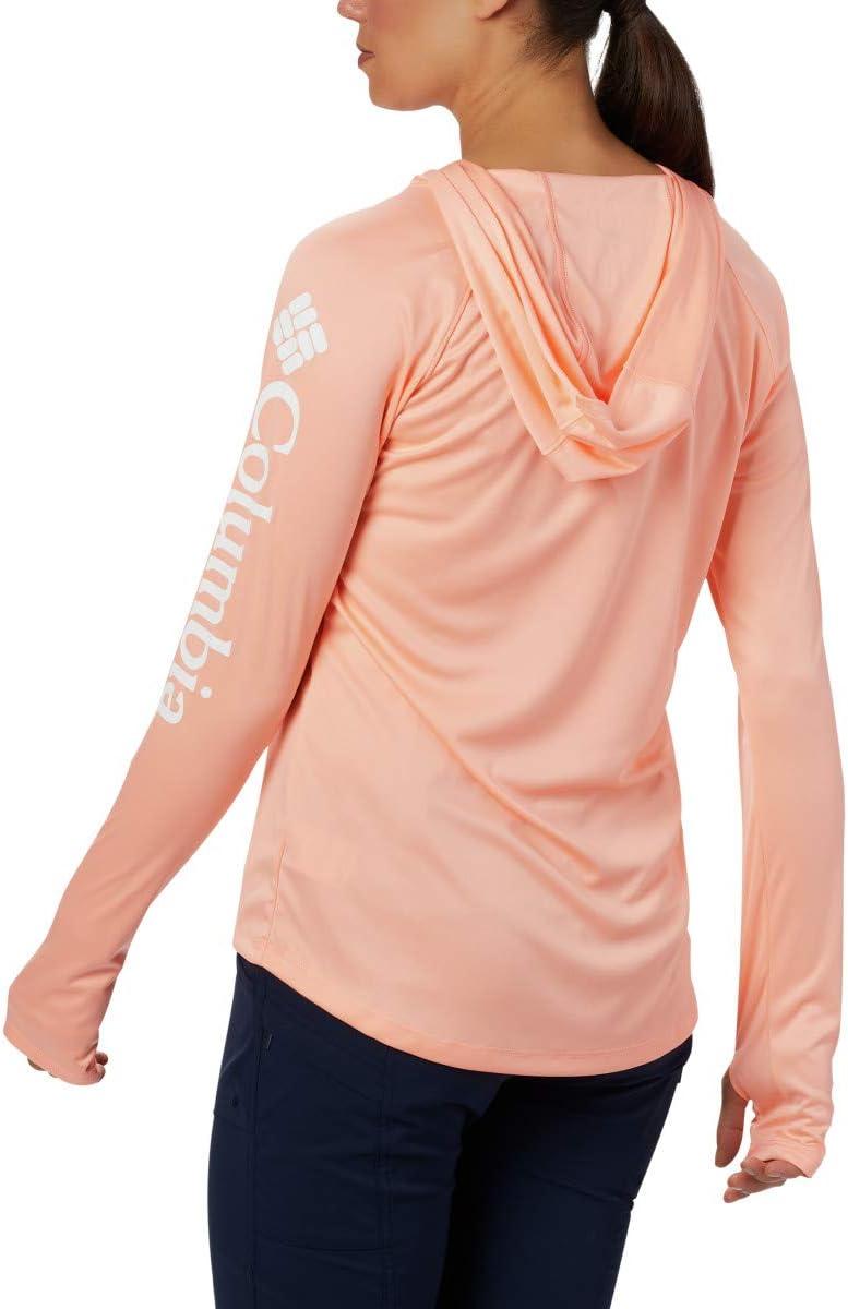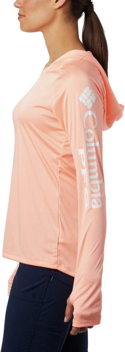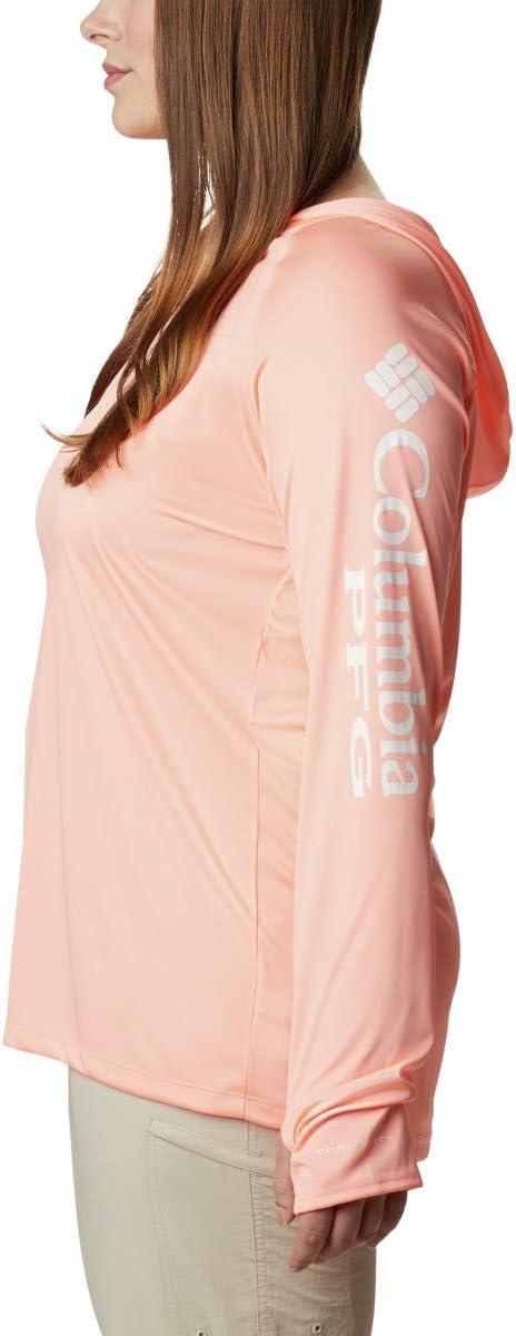Columbia Women’s PFG Tidal Tee Hoodie, UV Protection, Moisture-Wicking(Light Juice/City Grey Logo)
