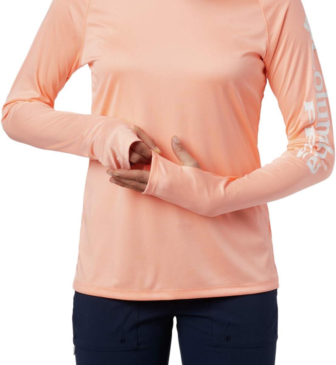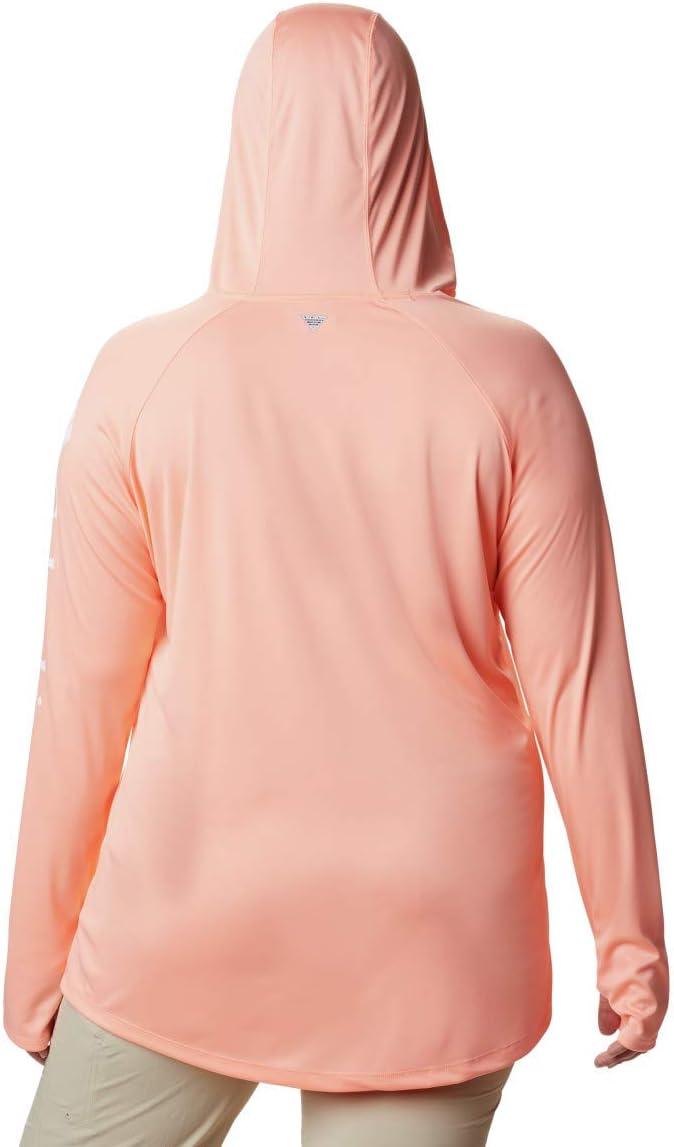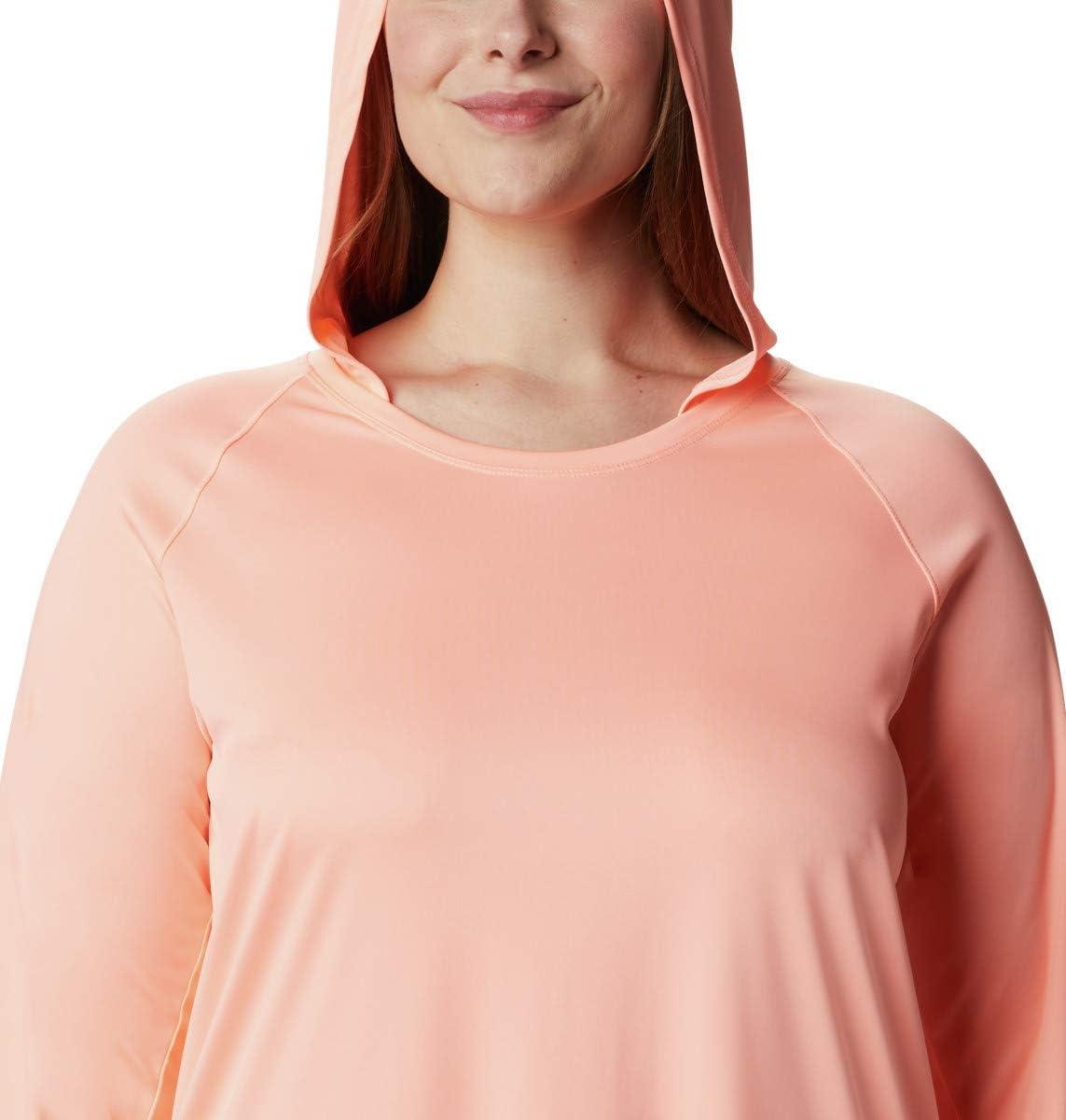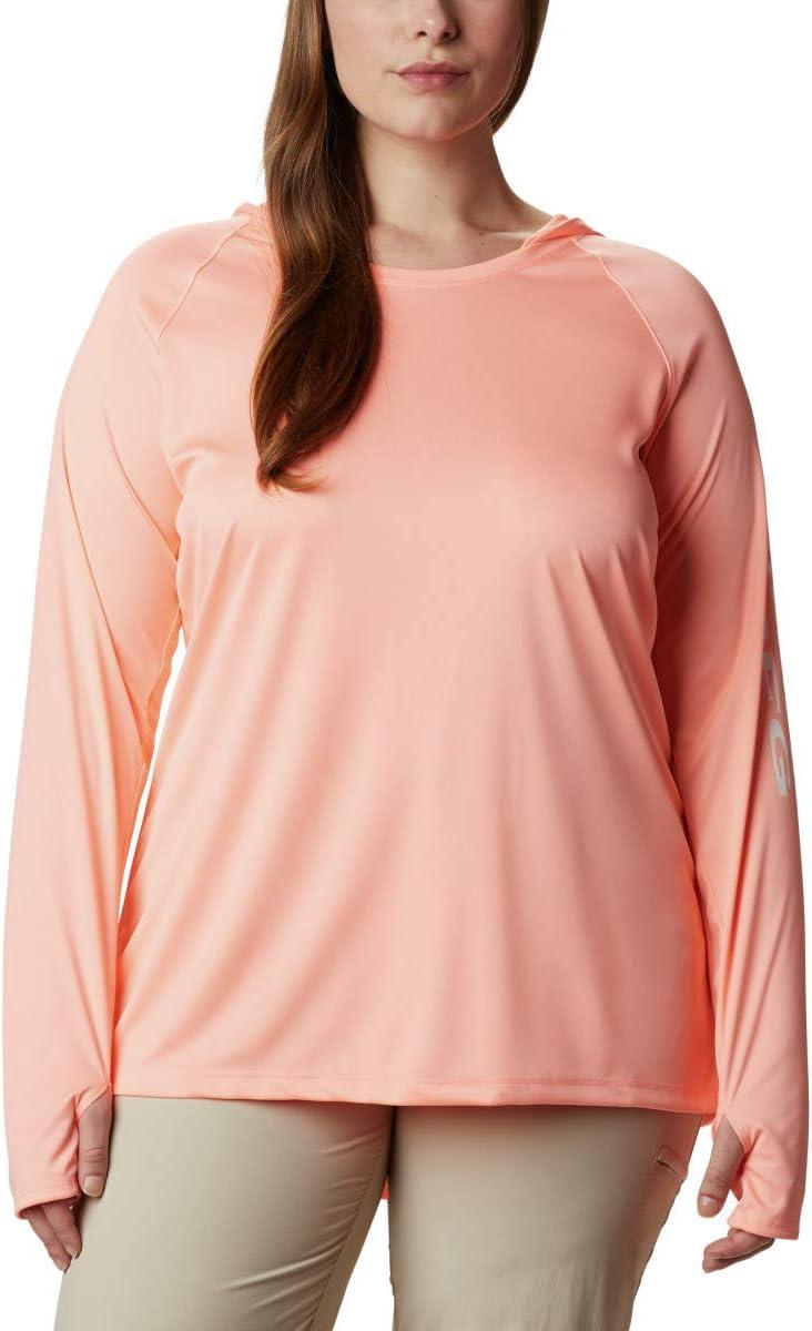 Columbia Women’s PFG Tidal Tee Hoodie, UV Protection, Moisture-Wicking(Light Juice/City Grey Logo)
