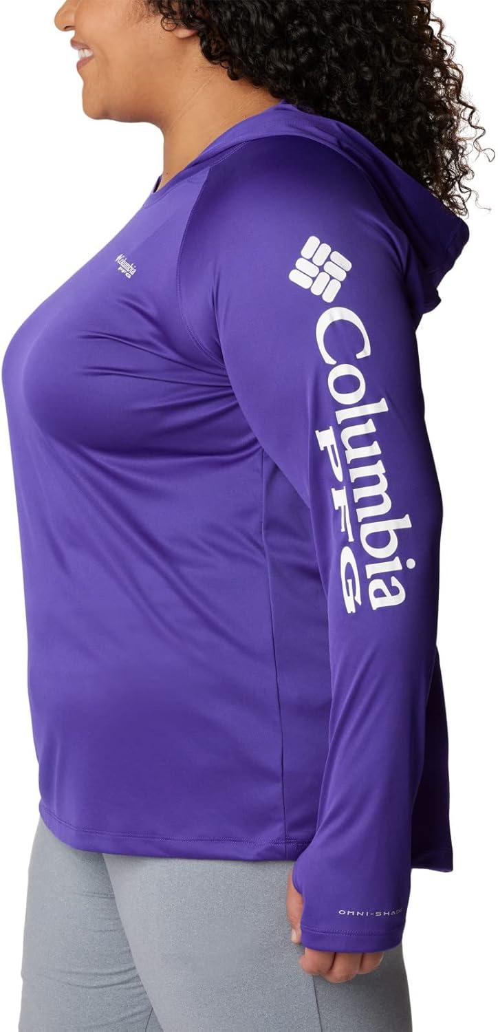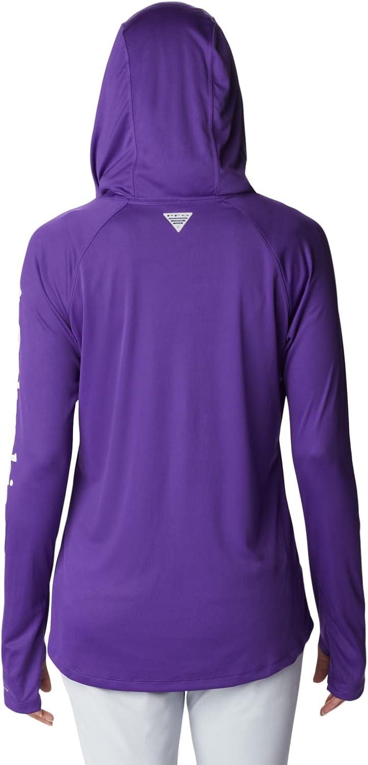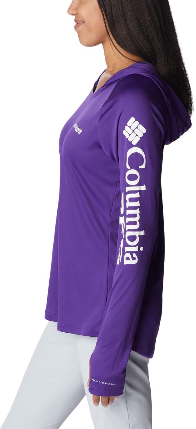 Fishing days just got better—Columbia PFG Women's Tidal Tee Hoodie has all the protection and comfort you need for your next big catch. Columbia is renowned for our quality material and proprietary technology featured in our women's apparel and this long sleeve shirt is an example of that. This long sleeve hoodie features our signature wicking fabric for ultimate moisture management during long fishing days. The unique technology quickly moves moisture from the skin into the fabric where it spreads across the surface to quickly evaporate—keeping you cool and your clothing dry and comfortable. The UPF 50 sun protection blocks UVA and UVB rays to help prevent sunburns and long-term skin damage. The tight weave construction with UV absorbent yarns block the full spectrum of harmful UV rays. The crew neck and all-way stretch fit make all-day wear and movement comfortable. Our signature logo is featured on the sleeve for subtle style. Whether you wear this layer alone or with other layers, you'll remain protected and comfortable out on the water. Columbia's Women's PFG Tidal Tee Hoodie comes in many sizes and colors. To ensure the size you choose is right, utilize our sizing chart and the following measurement instructions: For the sleeves, start at the center back of your neck and measure across the shoulder and down to the wrist. If you come up with a partial number, round up to the next even number. For the chest, measure at the fullest part of the chest, under the armpits and over the shoulder blades, keeping the tape measure firm and level.