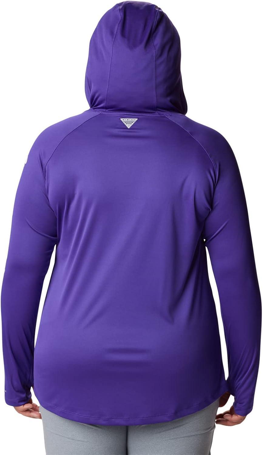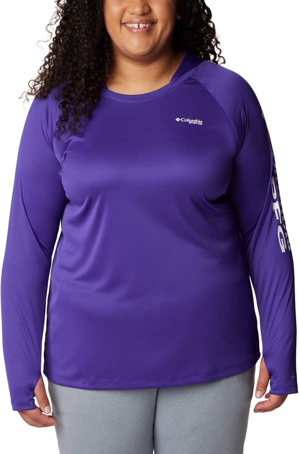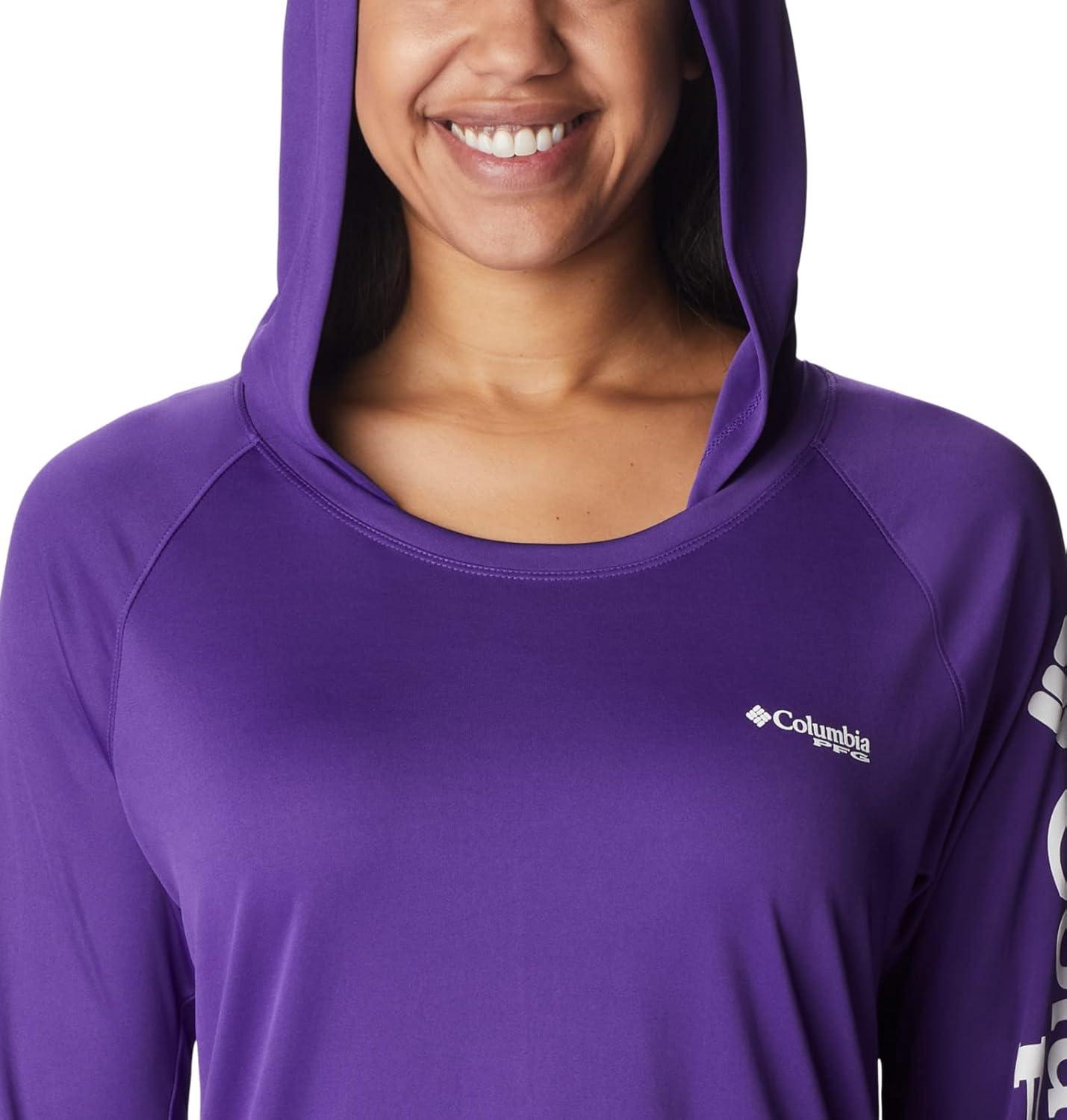 Fishing days just got better—Columbia PFG Women's Tidal Tee Hoodie has all the protection and comfort you need for your next big catch. Columbia is renowned for our quality material and proprietary technology featured in our women's apparel and this long sleeve shirt is an example of that. This long sleeve hoodie features our signature wicking fabric for ultimate moisture management during long fishing days. The unique technology quickly moves moisture from the skin into the fabric where it spreads across the surface to quickly evaporate—keeping you cool and your clothing dry and comfortable. The UPF 50 sun protection blocks UVA and UVB rays to help prevent sunburns and long-term skin damage. The tight weave construction with UV absorbent yarns block the full spectrum of harmful UV rays. The crew neck and all-way stretch fit make all-day wear and movement comfortable. Our signature logo is featured on the sleeve for subtle style. Whether you wear this layer alone or with other layers, you'll remain protected and comfortable out on the water. Columbia's Women's PFG Tidal Tee Hoodie comes in many sizes and colors. To ensure the size you choose is right, utilize our sizing chart and the following measurement instructions: For the sleeves, start at the center back of your neck and measure across the shoulder and down to the wrist. If you come up with a partial number, round up to the next even number. For the chest, measure at the fullest part of the chest, under the armpits and over the shoulder blades, keeping the tape measure firm and level.