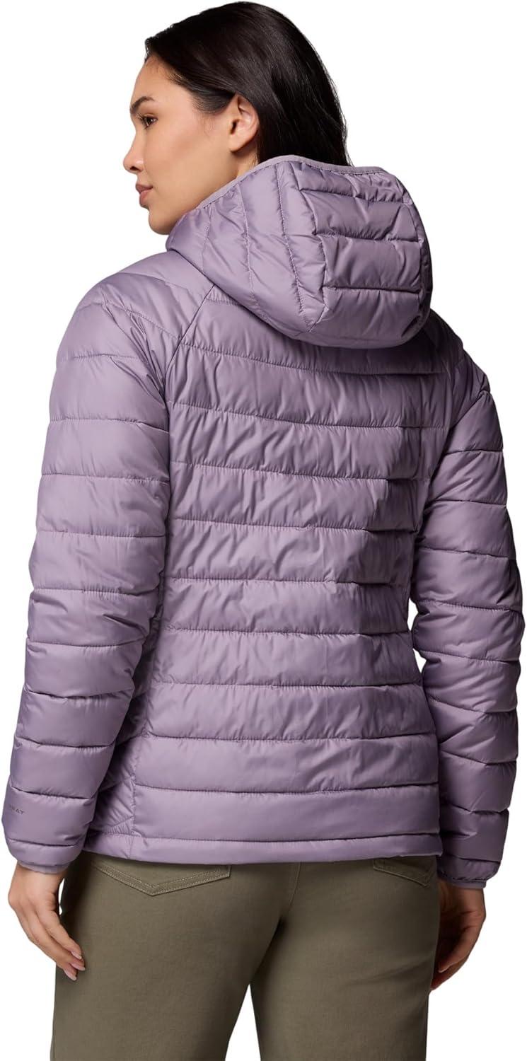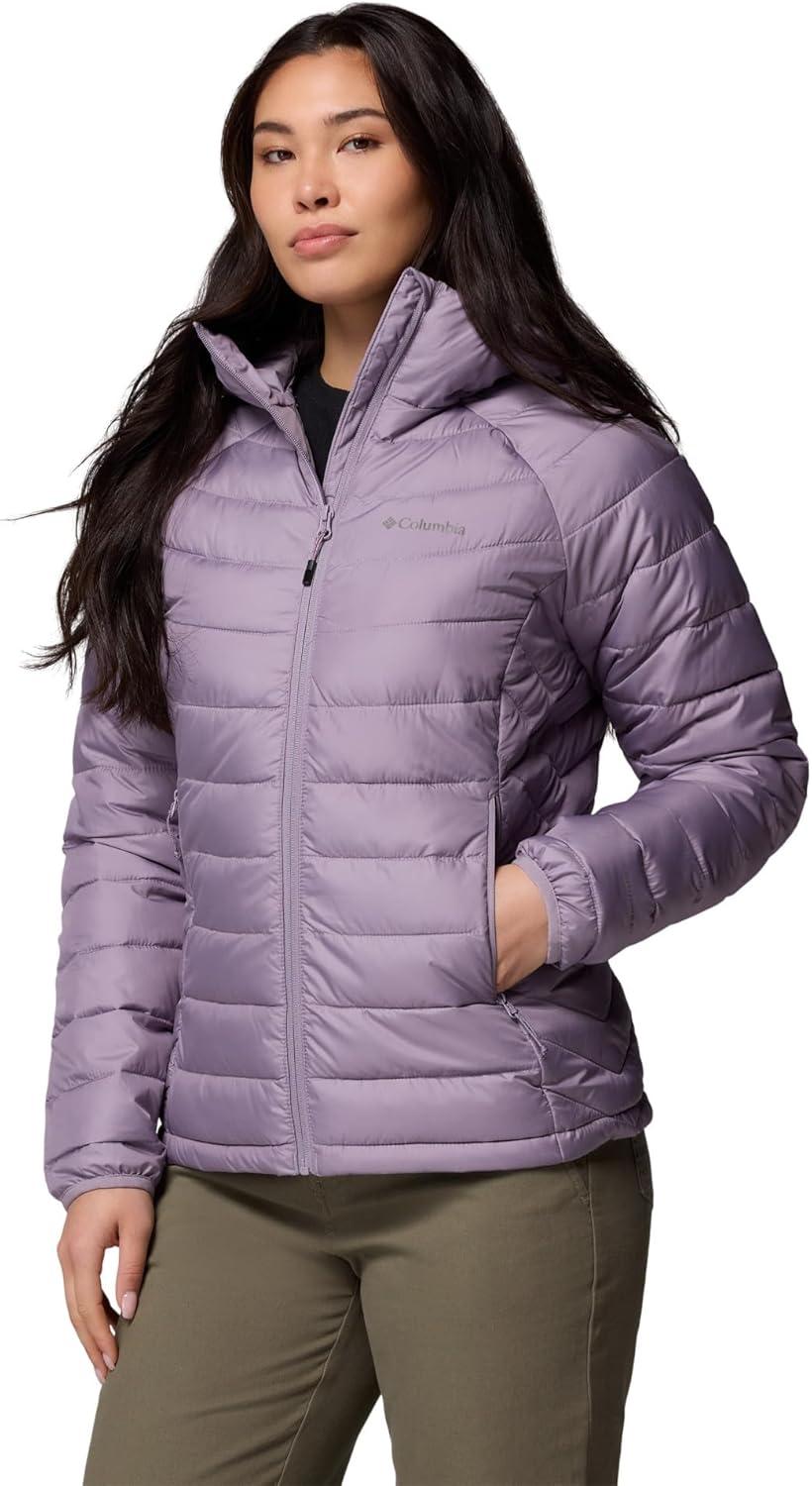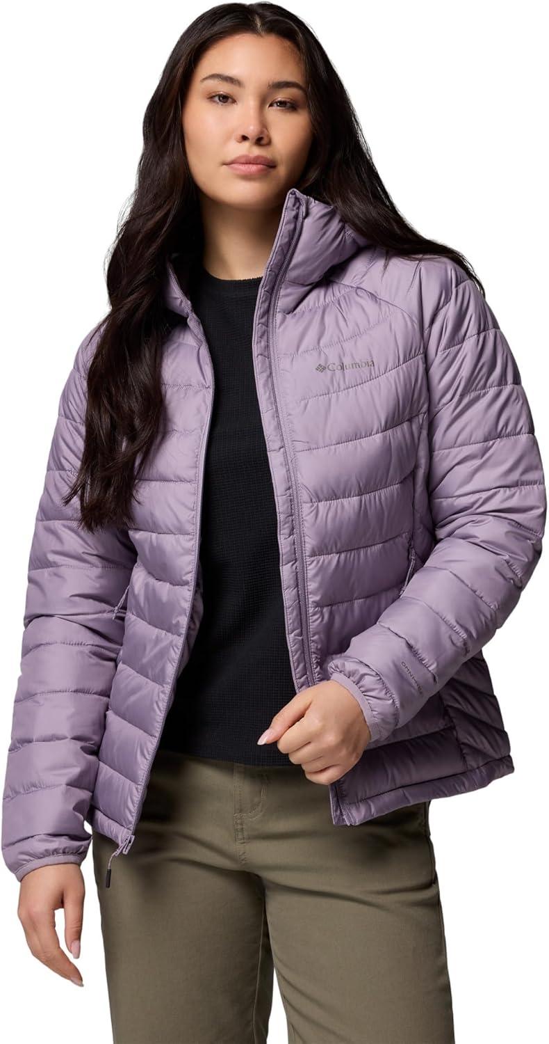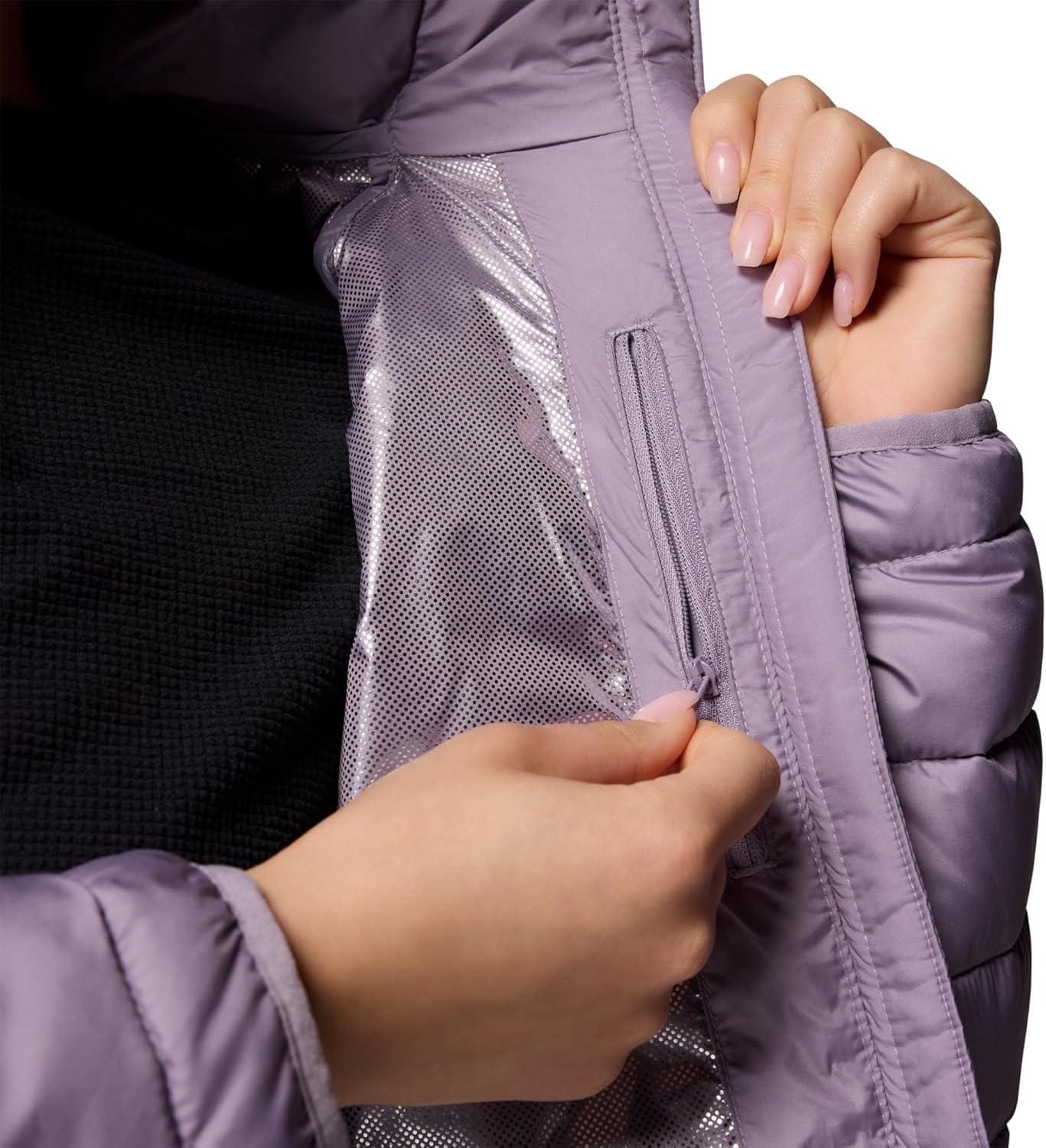 Versatile, lightweight, and warm, this Columbia women’s hooded jacket offers rain-and-stain repellency plus a thermal-reflective lining to keep you protected in light rain or snowfall. It's packed with recycled synthetic insulation. Columbia offers this jacket in multiple colors and sizes. Active fit.
