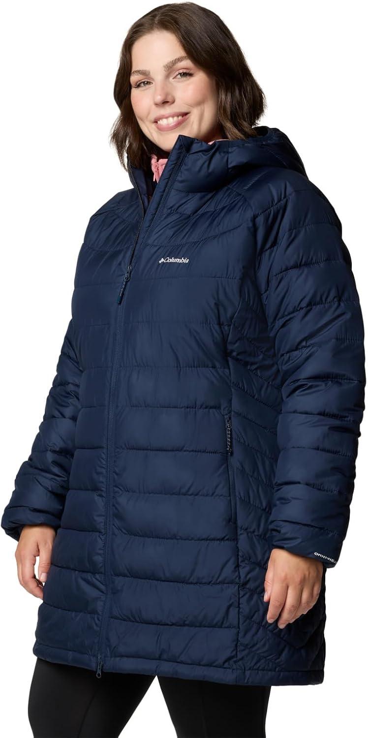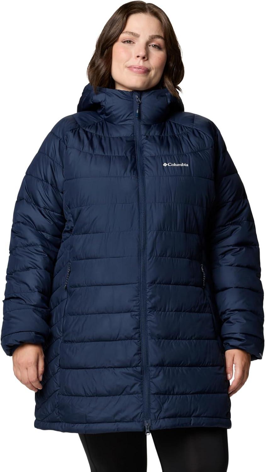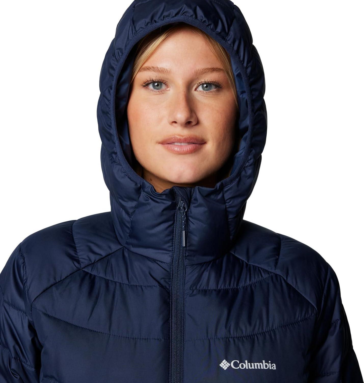 Versatile, lightweight, and warm, this Columbia women’s hooded jacket offers rain-and-stain repellency plus a thermal-reflective lining to keep you protected in light rain or snowfall. It's packed with recycled synthetic insulation and has a two-way front zipper for ventilation and mobility. Columbia offers this jacket in multiple colors and sizes. Extended sizing available. Active fit.