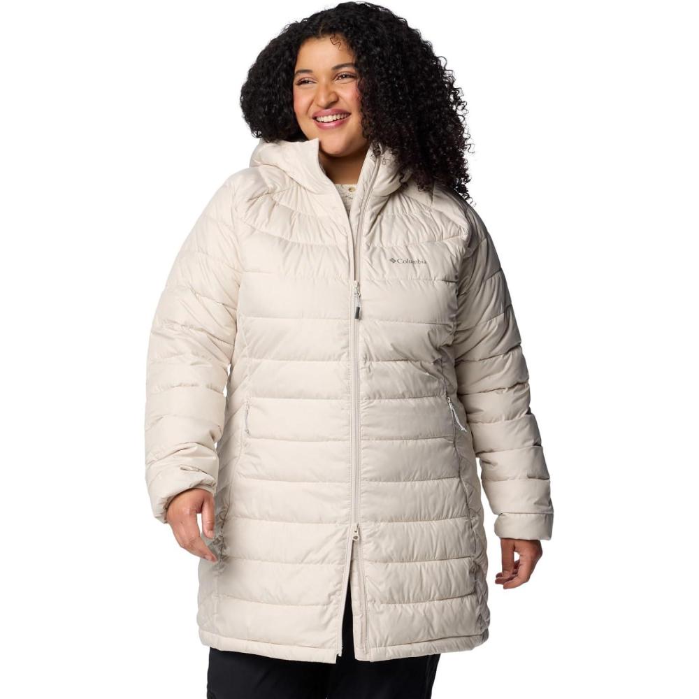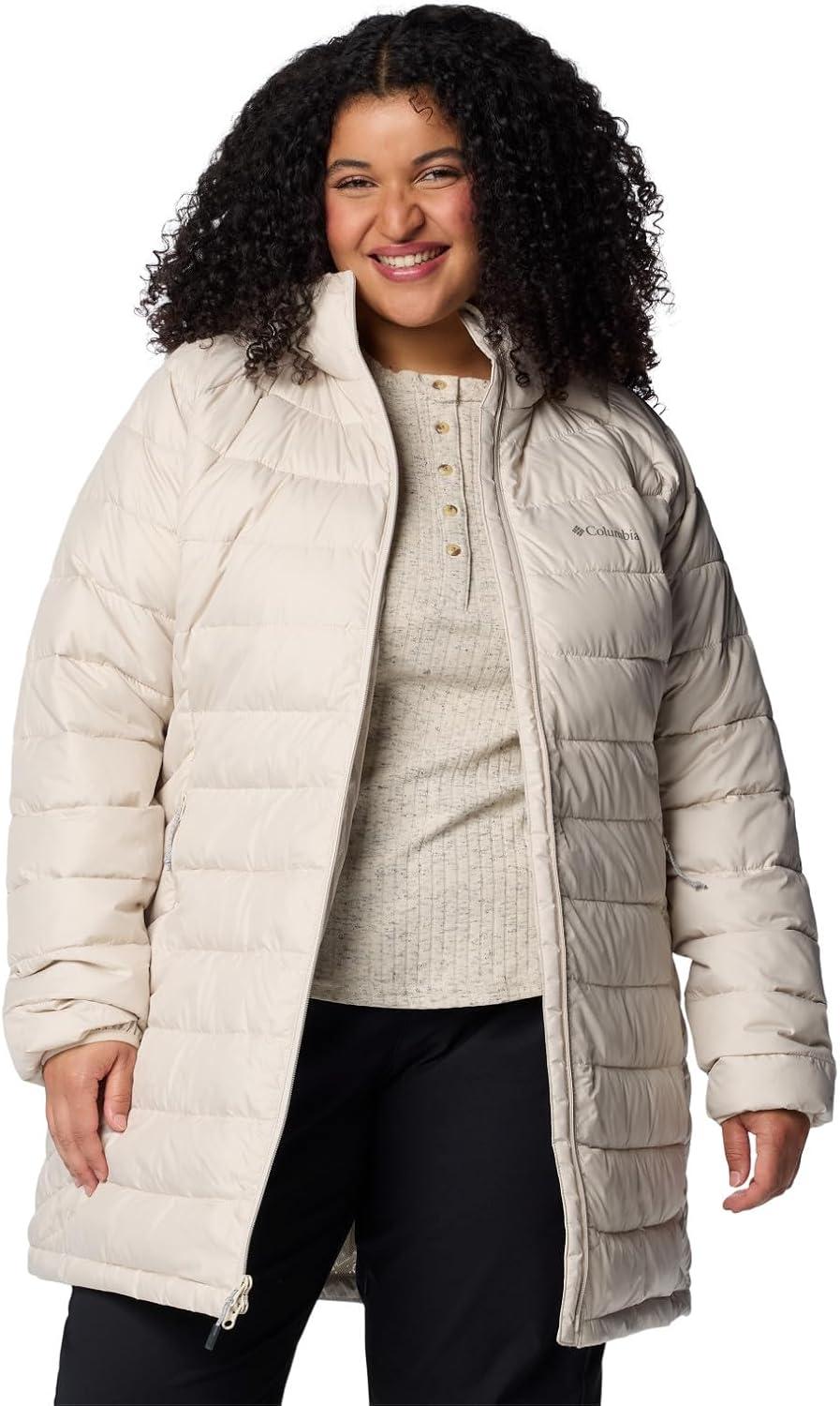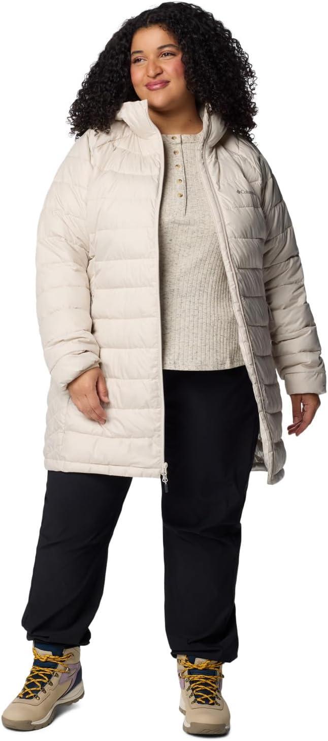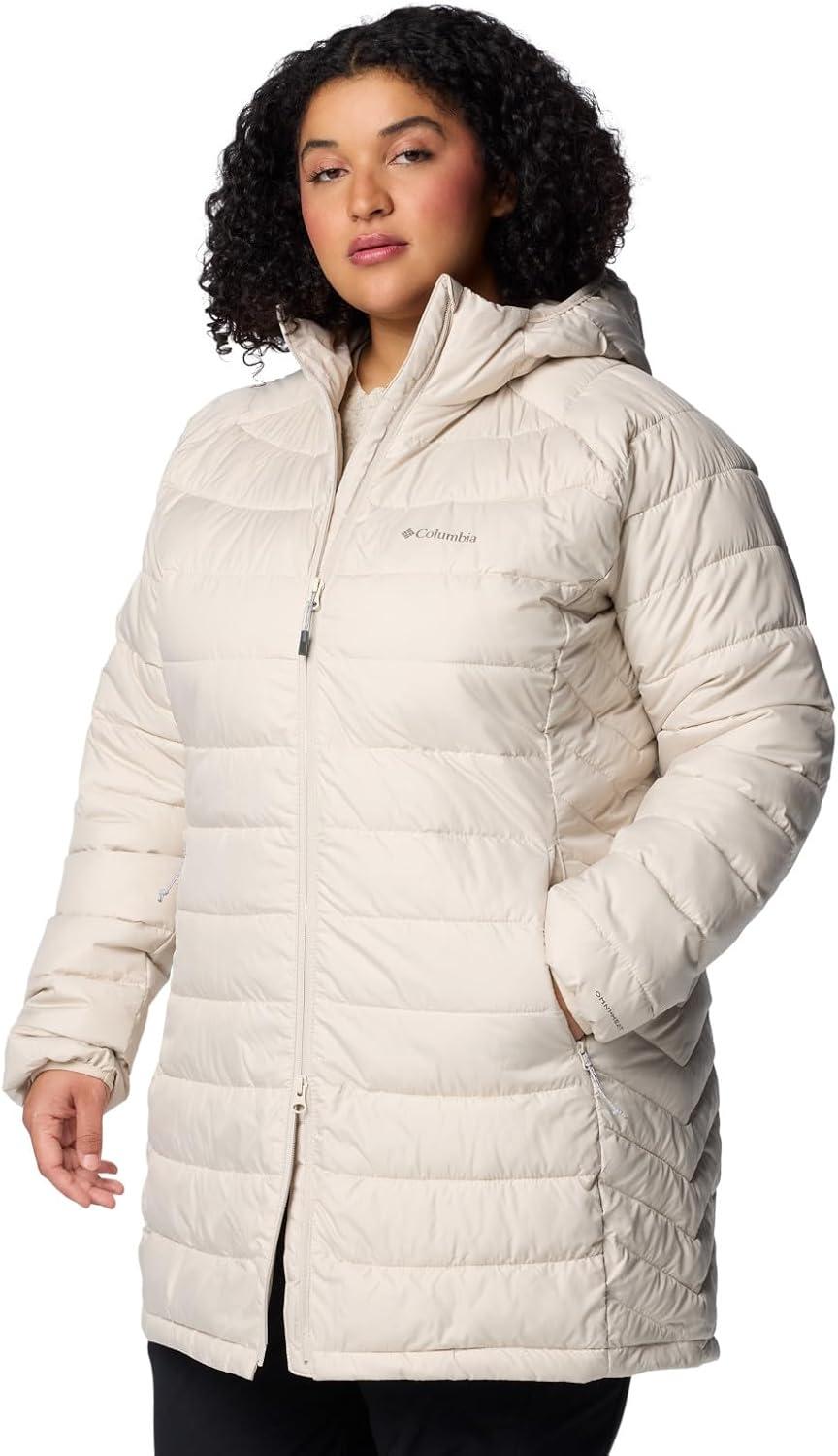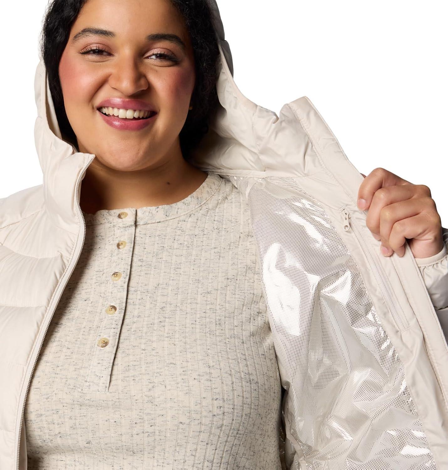 Versatile, lightweight, and warm, this Columbia women’s hooded jacket offers rain-and-stain repellency plus a thermal-reflective lining to keep you protected in light rain or snowfall. It's packed with recycled synthetic insulation and has a two-way front zipper for ventilation and mobility. Columbia offers this jacket in multiple colors and sizes. Extended sizing available. Active fit.