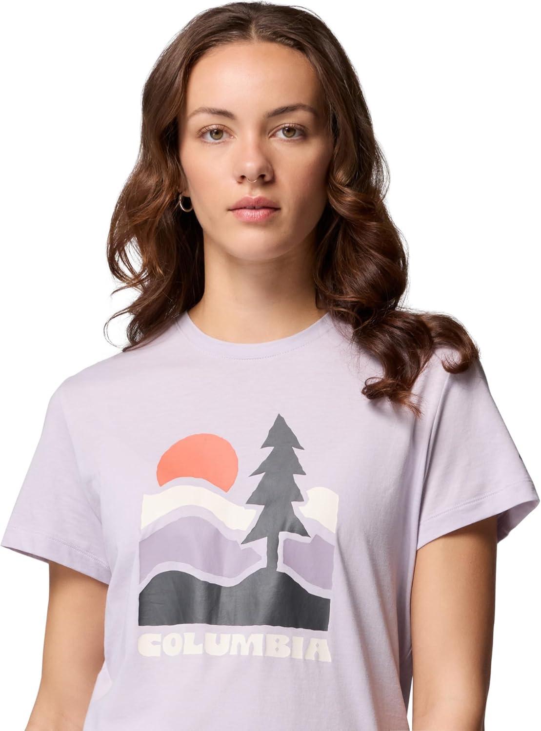 Columbia Women’s Ruby Springs Graphic Fitted Short Sleeve(Lavender Pearl/Get Hiked)