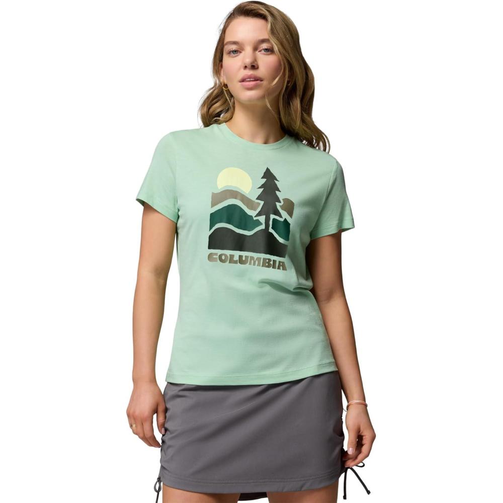 Columbia Women’s Ruby Springs Graphic Fitted Short Sleeve(New Mint/Get Hiked)