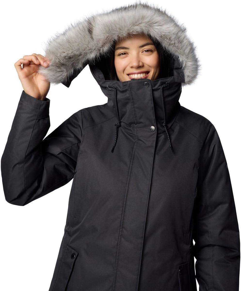 This Columbia women’s parka is insulated and thermal-lined to fend off frigid temps in style. A fleece-lined hood dials up the cozy, while the water-resistant shell repels light rain. Remove the faux fur trim to instantly switch up the look. Columbia offers this jacket in multiple colors and sizes. Extended sizing available. Regular fit.